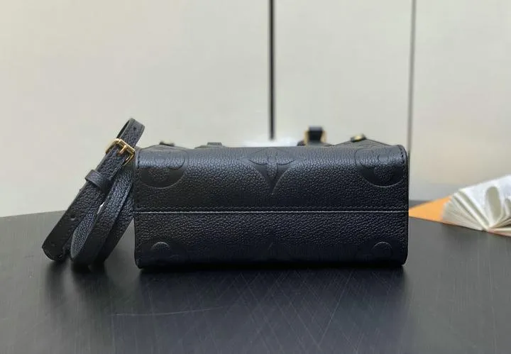 The replica measures 18 x 15 x 8.5 cm, just like the authentic OnTheGo BB. Its compact size is perfect for carrying essentials while maintaining an elegant presence. The bag can be handheld, worn on the arm, or over the shoulder using the included strap, making it versatile and comfortable for daily wear.