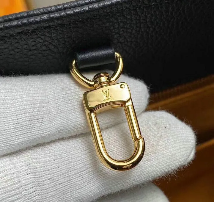 The replica uses premium-quality leather, designed to emulate the look and feel of Louis Vuitton’s Monogram Empreinte leather. The hardware, including zippers, clasps, and logo plaques, is crafted from durable metal with a gold-tone finish, closely matching the weight and appearance of the original hardware for an authentic touch.