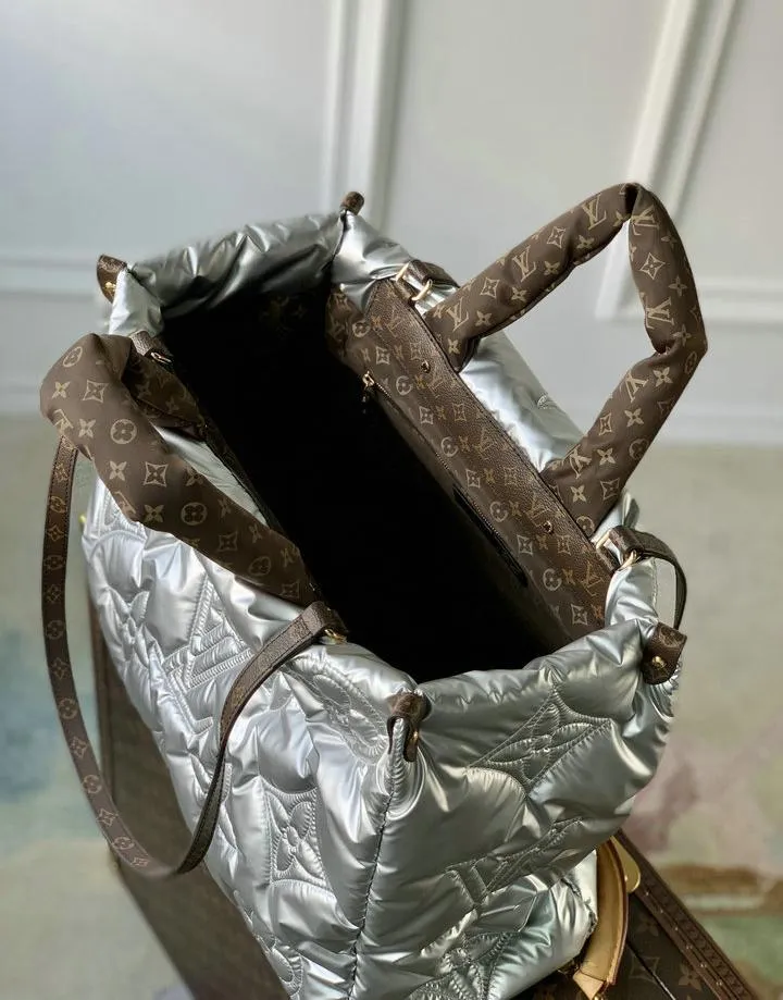 While specific measurements are not provided, this replica is designed to match the OnTheGo GM’s iconic oversized tote silhouette. It offers ample capacity for daily essentials and features comfortable top handles and shoulder straps, ensuring versatile carrying options. The bag’s proportions are tailored for a bold, stylish presence, just like the original.