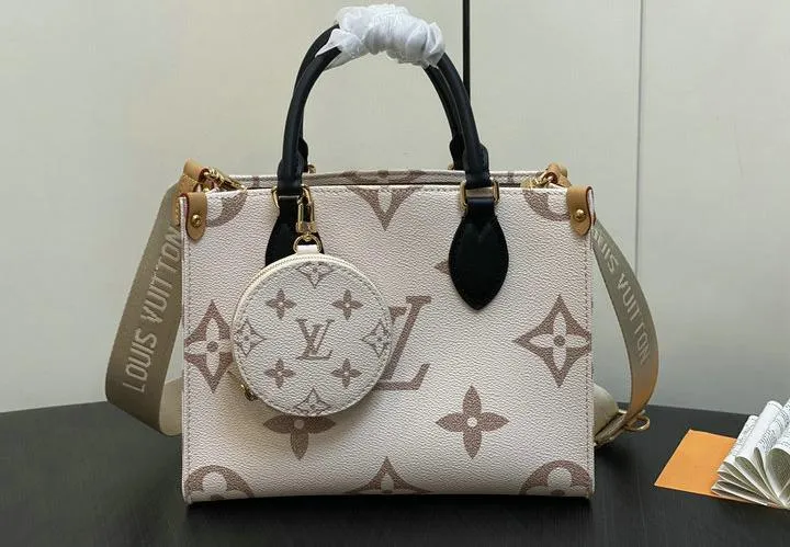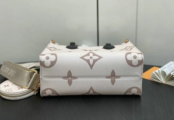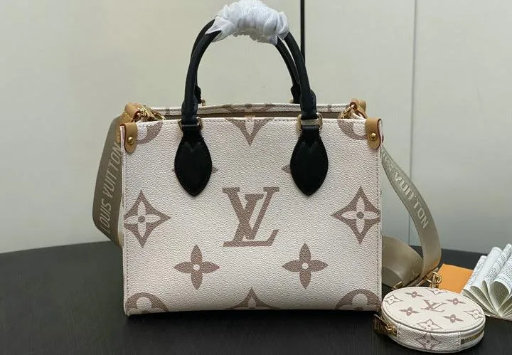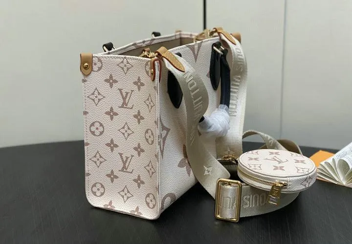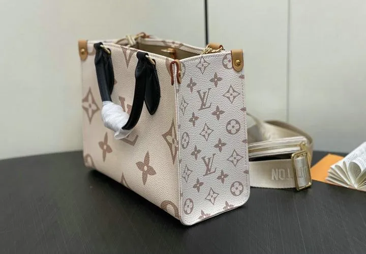 This replica Louis Vuitton OntheGo PM includes a branded dust bag for protective storage and a quality box that mimics the original packaging. You may also receive authenticity cards and care booklets, providing a luxurious unboxing experience. Each accessory is thoughtfully included to enhance the overall feel of owning a premium replica.