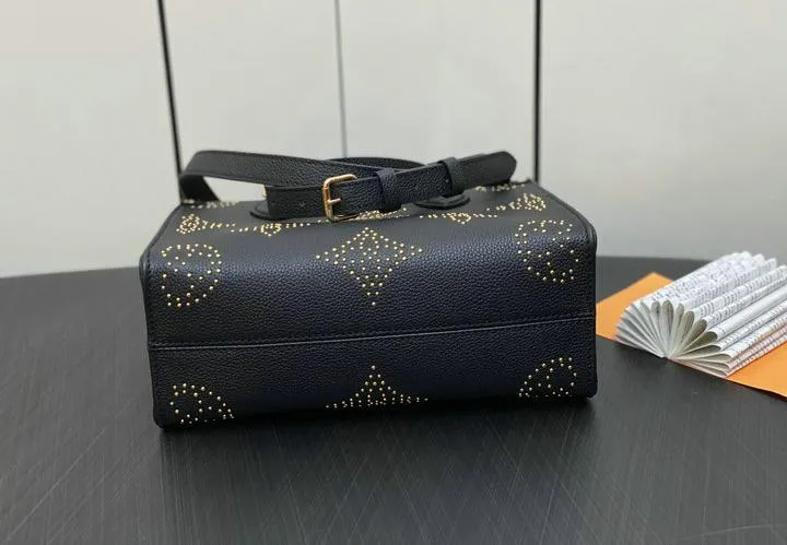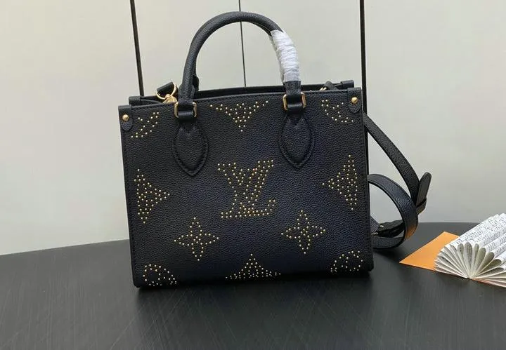 The replica tote measures approximately 25 x 19 x 11.5 cm, faithfully reflecting the official size of the Louis Vuitton OnTheGo PM. This compact yet spacious design sits comfortably on the arm or can be carried by hand, making it versatile for both daily errands and special occasions without compromising on style or practicality.
