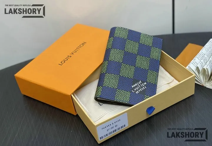 Louis Vuitton 1:1 Mirror Replica Passport Cover Damier Heritage Blue Green 14CM/5.5IN