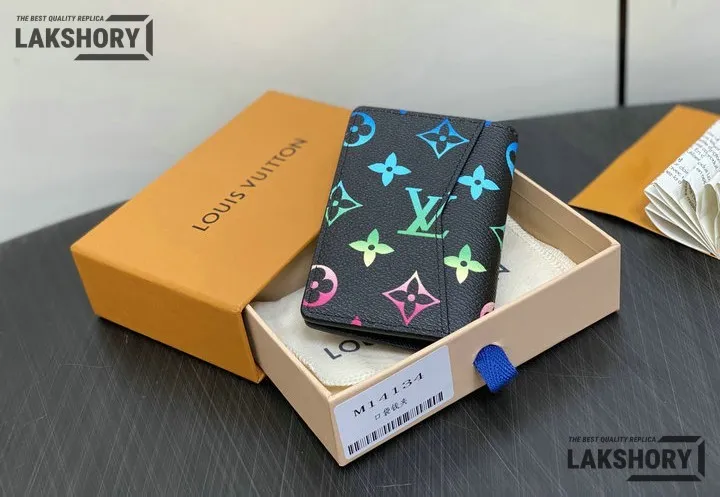 Louis Vuitton 1:1 Mirror Replica Pocket Organizer Monogram Iridescent Gradient Black 7.5CM/3IN