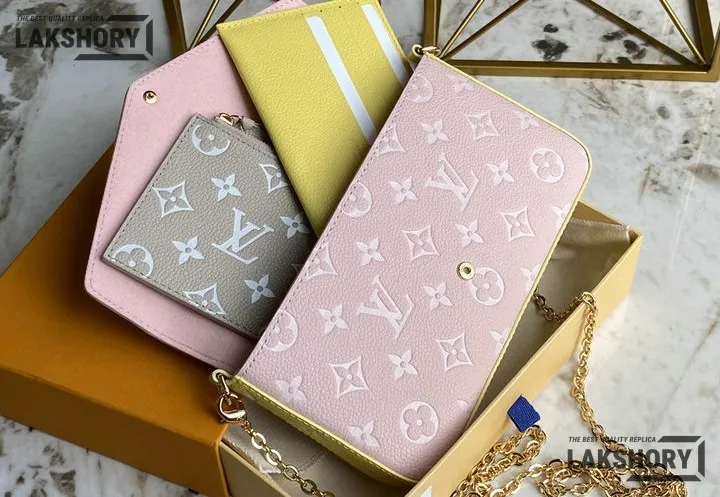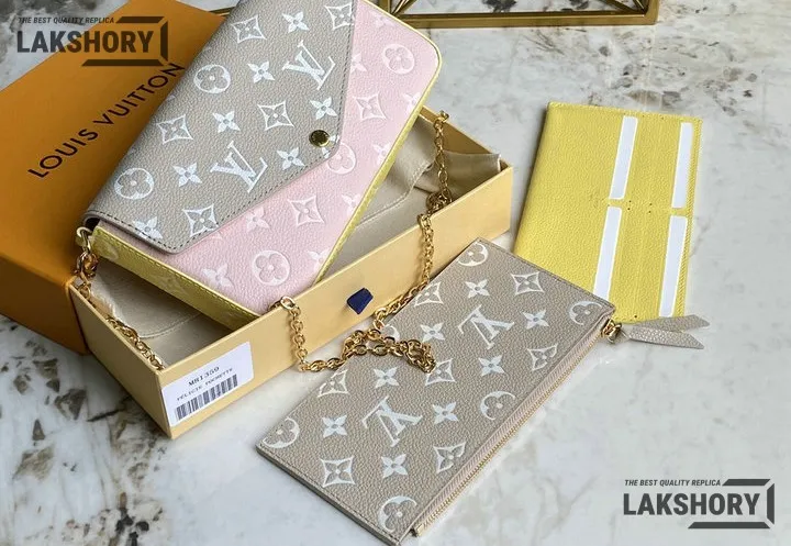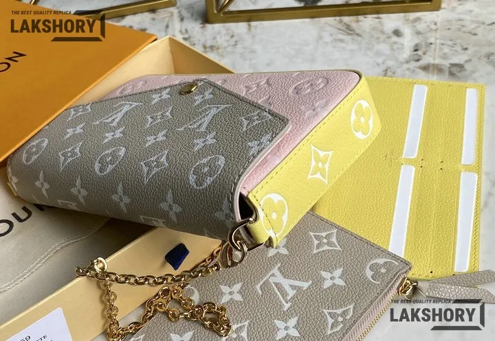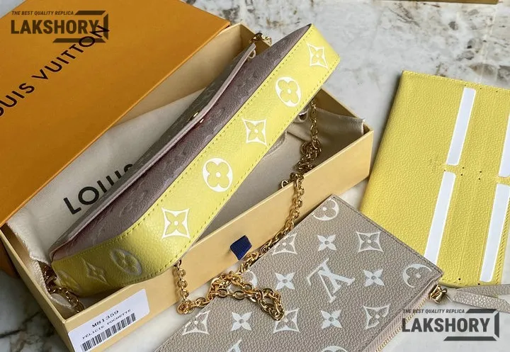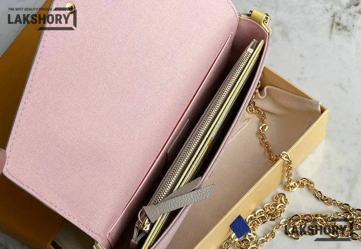 Louis Vuitton 1:1 Mirror Replica Spring in the City Felicie Pochette Chain Wallet Pink Beige Yellow 21CM/8.3IN