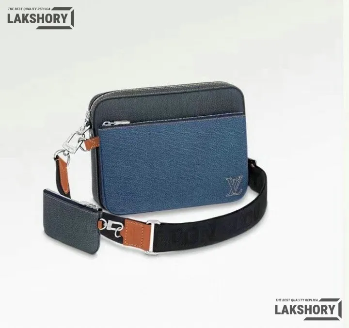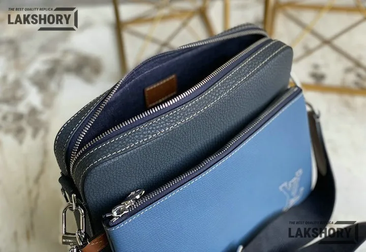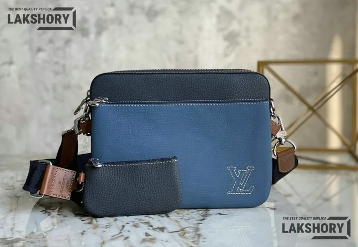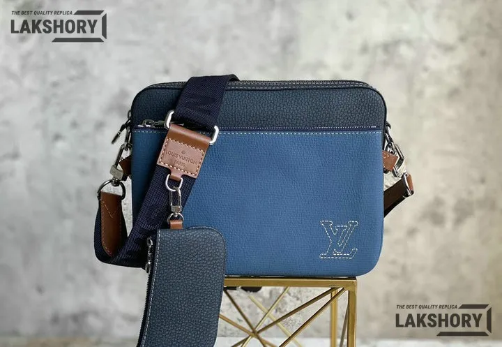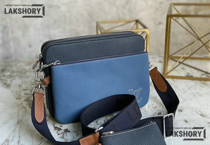 Louis Vuitton 1:1 Mirror Replica Taurillon Trio Messenger Denim Blue 25CM/9.8IN