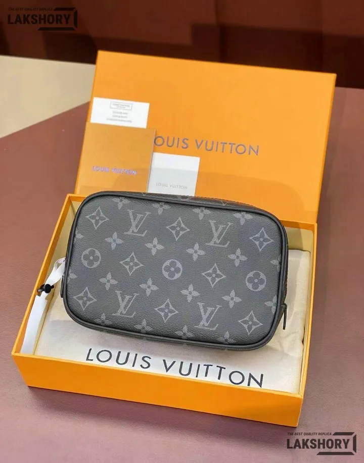 Louis Vuitton 1:1 Mirror Replica Toiletry Pouch Monogram Eclipse GM Black/Grey 21CM/8.3IN