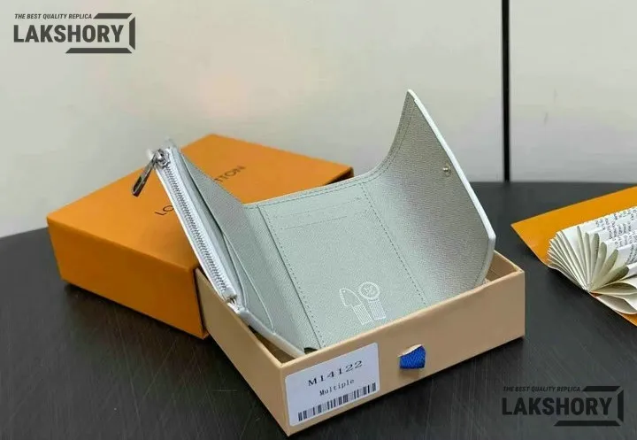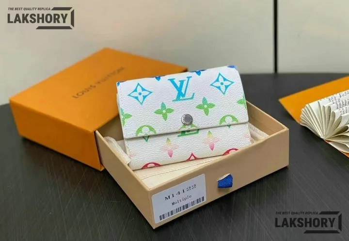 Louis Vuitton 1:1 Mirror Replica Tri-fold Wallet Iridescent LV Gradient Victor Grey Multicolor 11.5CM/4.5IN