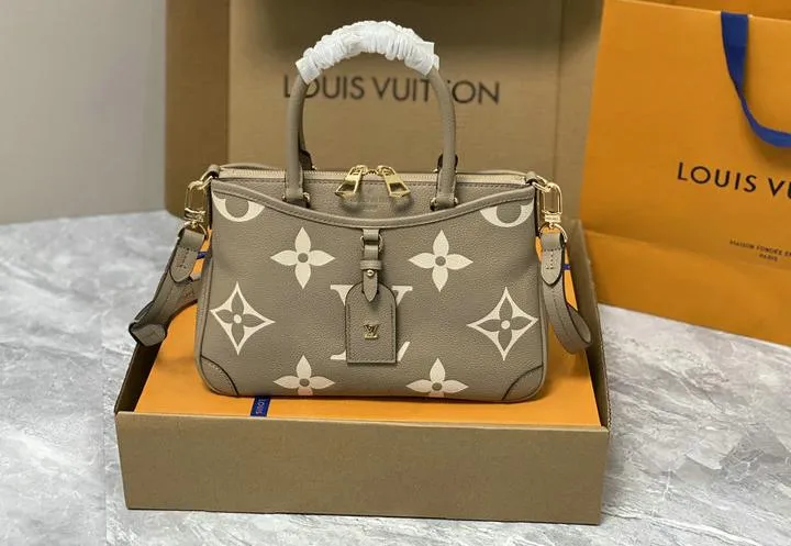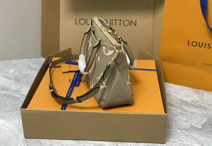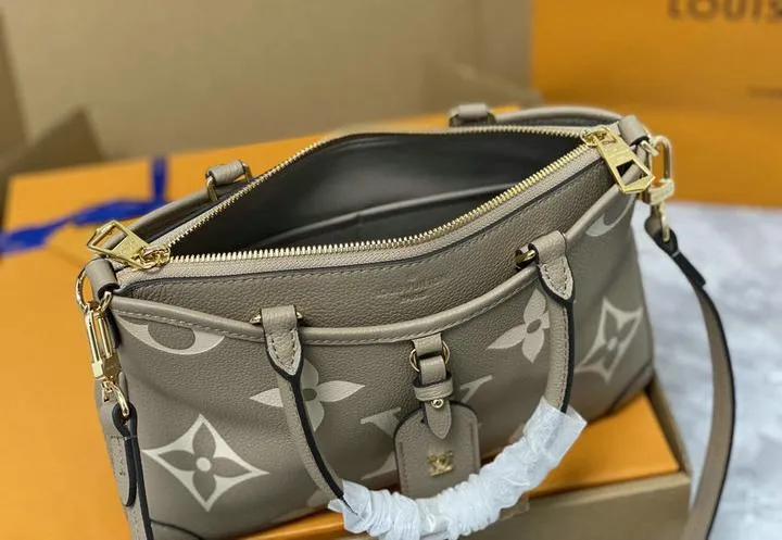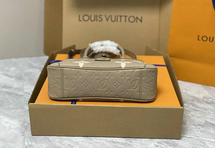 The bag is constructed from high-quality leather, closely emulating the Monogram Empreinte leather used by Louis Vuitton. The hardware, including zippers and clasps, is made from durable metal with a premium finish. These materials ensure the bag not only looks luxurious but also feels substantial and refined, just like the original.