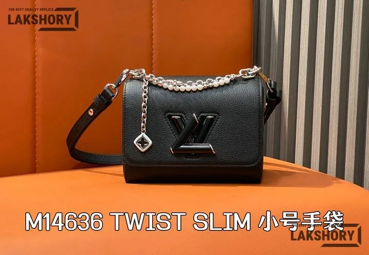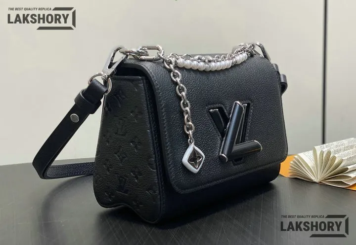 Louis Vuitton 1:1 Mirror Replica Twist PM Slim Bag Black Taurillon Leather 19CM/7.5IN