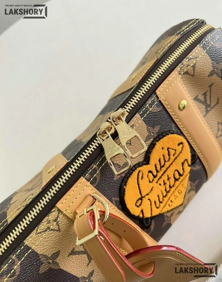 Louis Vuitton 1:1 Mirror Replica X NIGO Reverse Stripes City Keepall Bandouliere Brown 27CM/10.6IN