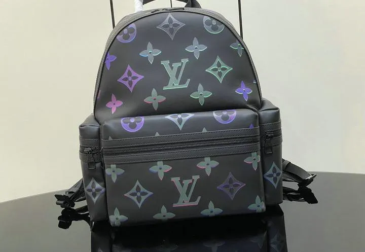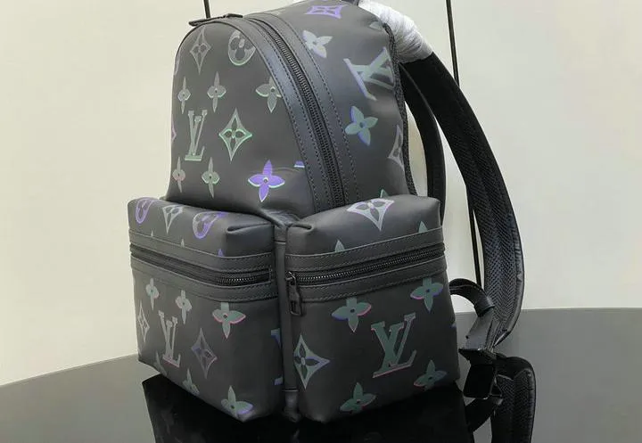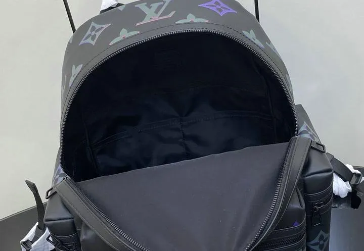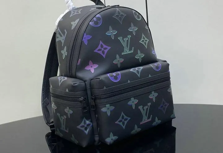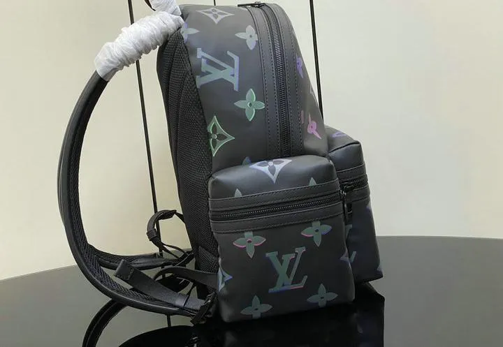 The backpack utilizes high-quality coated canvas paired with genuine leather, replicating the luxurious feel and durability of the original. The hardware, including zippers and buckles, is carefully selected to emulate the authentic Louis Vuitton finish, ensuring a refined look and reliable function that matches the designer standard in both appearance and longevity.