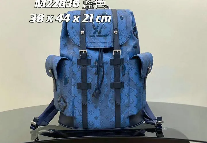 How convincing is this Abyss Blue Christopher MM replica when placed beside the real Louis Vuitton backpack?