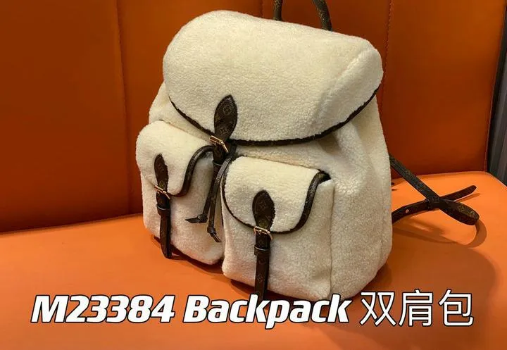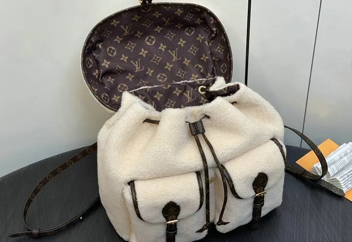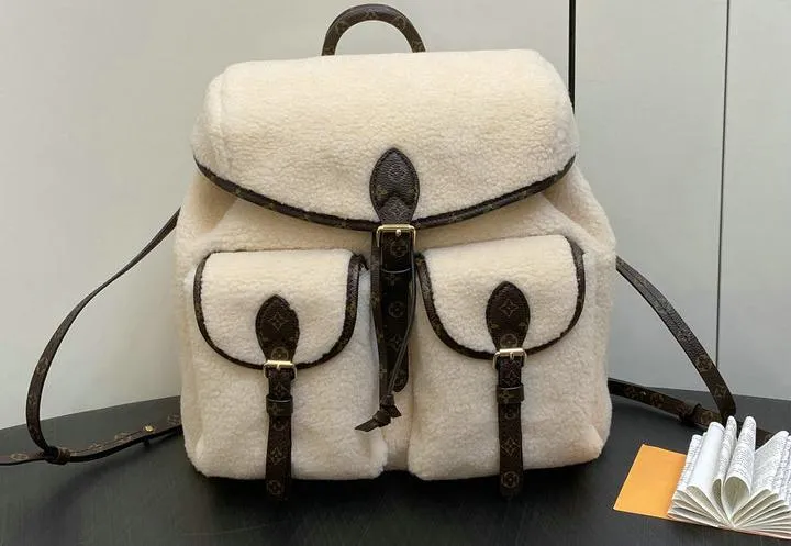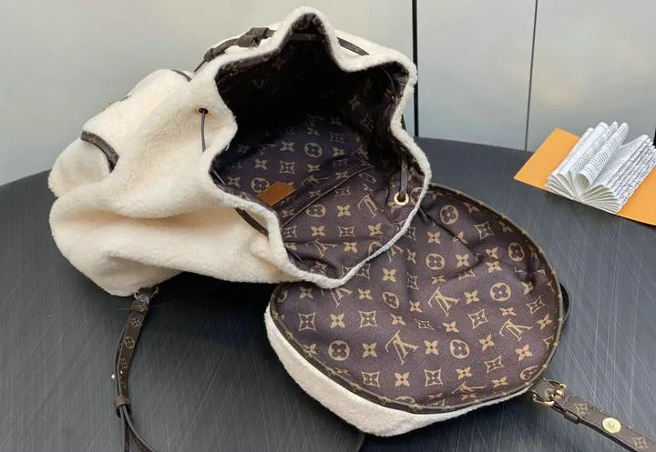The replica utilizes premium lamb wool and high-quality canvas, mirroring the luxurious textures of the original. Hardware elements, such as zippers and buckles, feature a polished metallic finish and are meticulously engraved with Louis Vuitton branding, offering both durability and an authentic look comparable to the genuine item.
