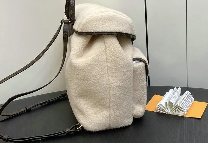 To keep your backpack looking pristine, gently wipe the lamb wool and canvas exterior with a soft, damp cloth. Store in a cool, dry place away from direct sunlight. Avoid overloading to maintain its shape, and regularly check the hardware for any signs of wear, cleaning it with a non-abrasive cloth when needed.