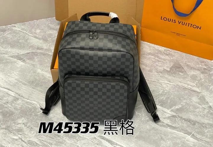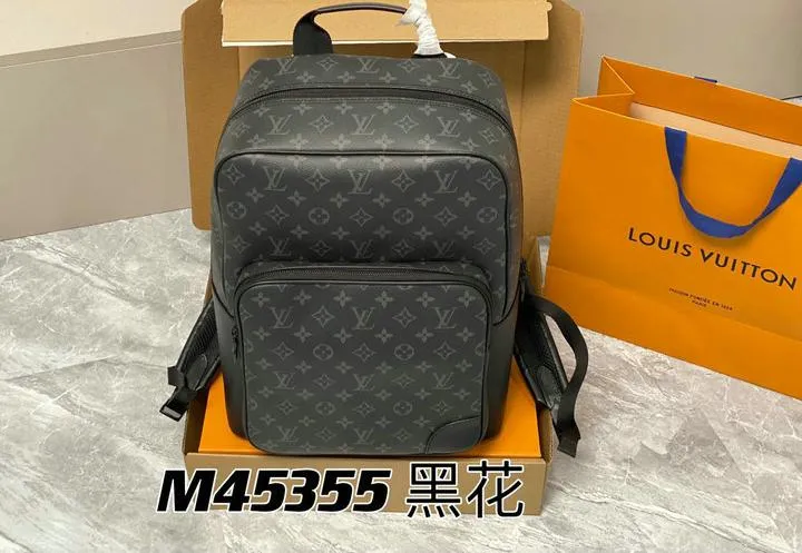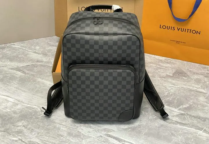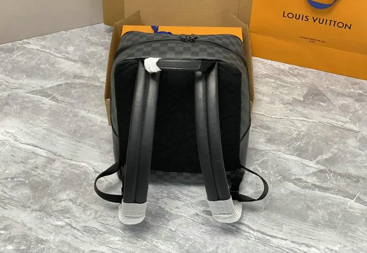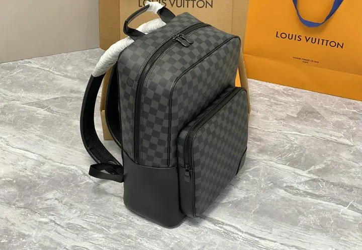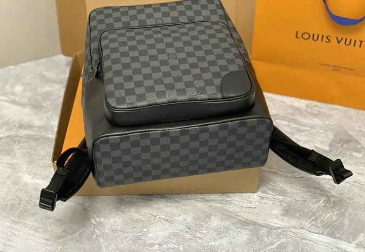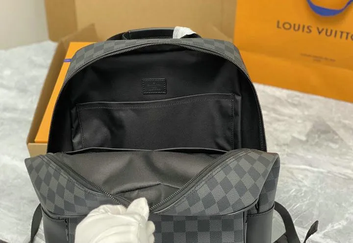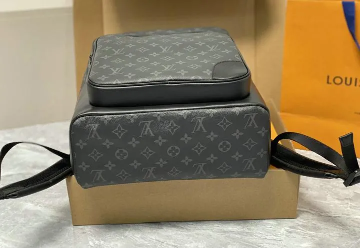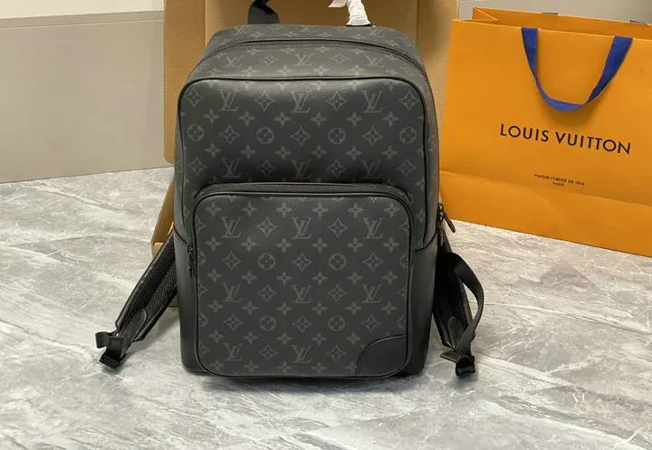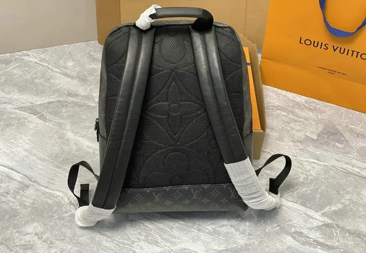 The backpack features premium coated canvas paired with genuine leather, replicating the original’s luxurious feel. The hardware, such as zippers and buckles, is made from high-quality metal with a polished finish, closely matching the weight and look of authentic Louis Vuitton pieces. This careful selection of materials ensures both durability and a refined aesthetic.
