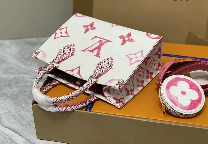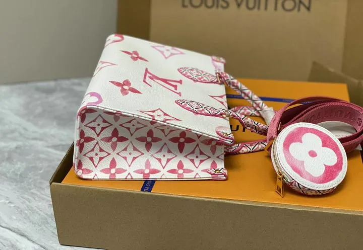 Each bag is patterned from a three-dimensional scan of the boutique OntheGo PM. Panels are die-cut and checked with digital gauges to stay within 0.09 mm along every seam. Handles endure thirty thousand flex cycles on a pull-tester, and the finished canvas is inspected under a daylight lamp to confirm the pastel monogram lines up within one degree of the reference grid. Only pieces that clear every metric move to boxing.