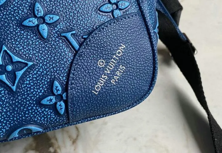 The body is crafted from premium full-grain cowhide leather, finished with a durable blue coating that mirrors Louis Vuitton’s signature summer colourway. All hardware—including the roll-top hook, front-pocket zipper, and strap adjusters—is forged from solid alloy brass and plated in polished silver to resist tarnish. Edge ink, zipper glide, and logo embossing are colour-matched to the original for a seamless luxury experience.