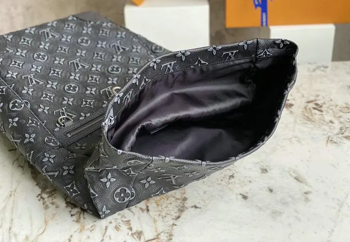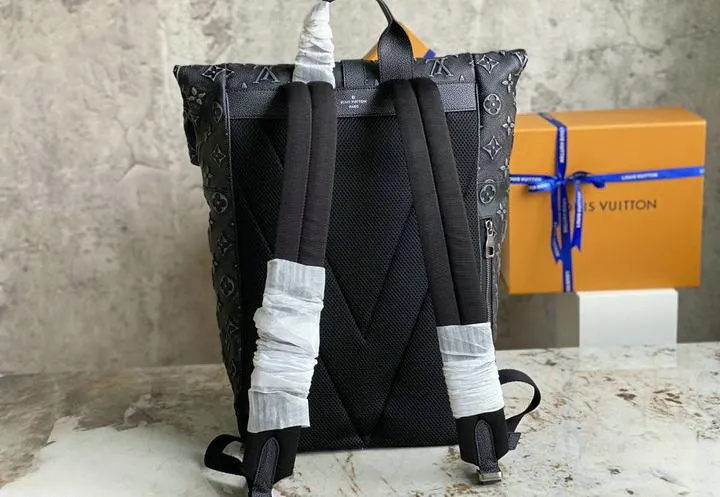 This 1:1 mirror replica is engineered to replicate the genuine Roll Top Black Backpack in silhouette, texture, and finishing. The cowhide leather is stamped with Louis Vuitton’s Monogram motifs in a matte-on-matte noir palette, while the roll-top closure, front zipper pocket, and hardware placements follow the brand’s factory blueprint. The proportions and stitch counts are calibrated to match the original, making the replica virtually indistinguishable even on close inspection—ideal for collectors who demand showroom-level accuracy.