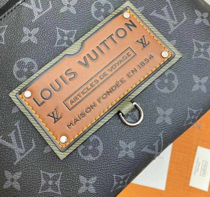 The Louis Vuitton rep Discovery Gaston Eclipse utilizes premium, carefully selected materials to replicate the original’s texture and durability. The hardware, such as zippers and clasps, is made from high-quality metals with a polished finish, echoing the authentic brand’s signature shine and sturdiness, resulting in a product that is both stylish and robust.