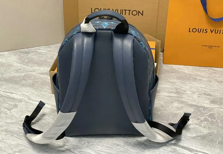 After daily use wipe the surface with a microfiber cloth to lift dust. Remove light grime with a cloth dampened in lukewarm water and neutral soap, then blot dry. Condition cowhide trim every six months with a clear leather balm to avoid cracking. Store the backpack upright, lightly filled with acid free tissue, inside the supplied dust bag and keep it out of direct sunlight to prevent fading of the gradient print.