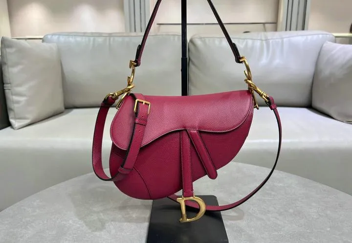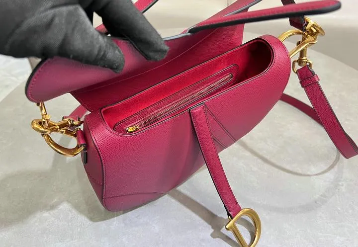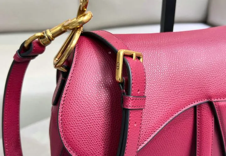 Dior 1:1 Mirror Replica Leather Saddle Bag Salmon Pink 24CM/9.4IN