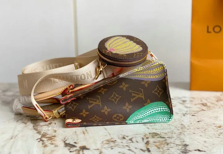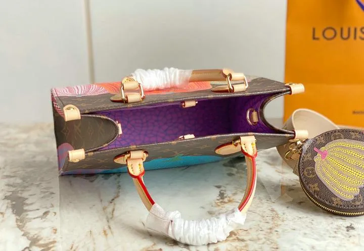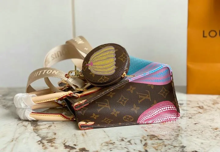 This replica LV x YK comes beautifully presented, including a branded dust bag for storage and protection. It also features carefully replicated tags and cards, closely matching those provided with the authentic Louis Vuitton OnTheGo PM. The attention to detail in packaging enhances the overall luxury unboxing experience.