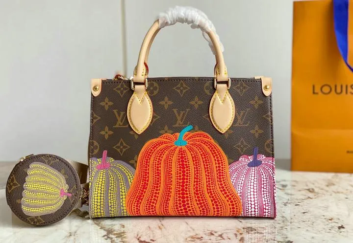This replica LV x YK PM pIMPKIN BAG is crafted with meticulous attention to detail, offering a 1:1 mirror image of the authentic OnTheGo . The placement of the Monogram and Monogram Reverse canvas, stitching, and logo details closely match the original, ensuring a highly realistic and luxurious appearance for discerning enthusiasts.