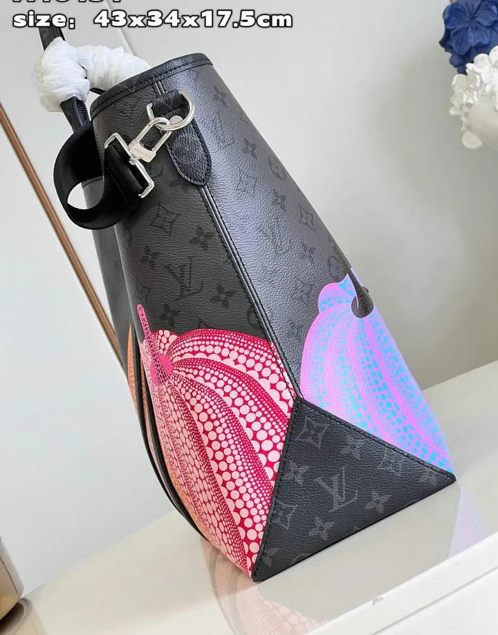 To maintain the beauty of your replica tote, store it in a dust bag when not in use and avoid prolonged exposure to direct sunlight. Gently clean the leather with a soft, damp cloth as needed. Avoid contact with oils, perfumes, and sharp objects to preserve both the material and the vibrant Kusama artwork.