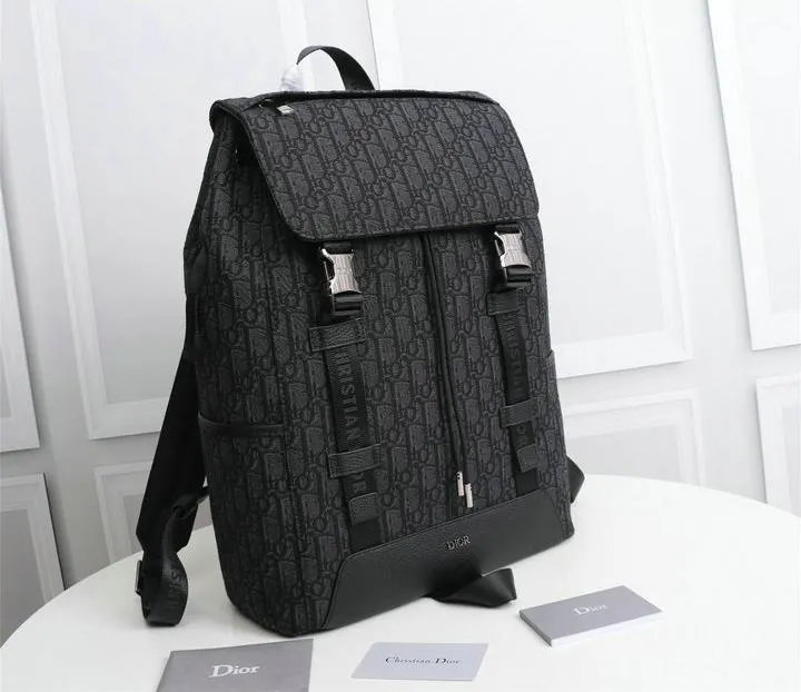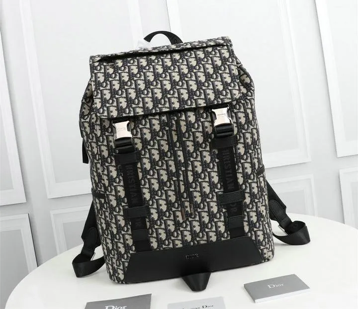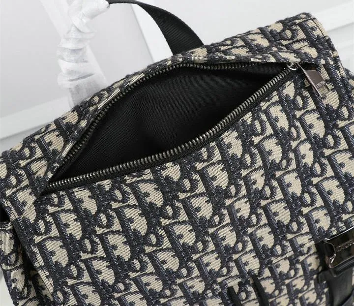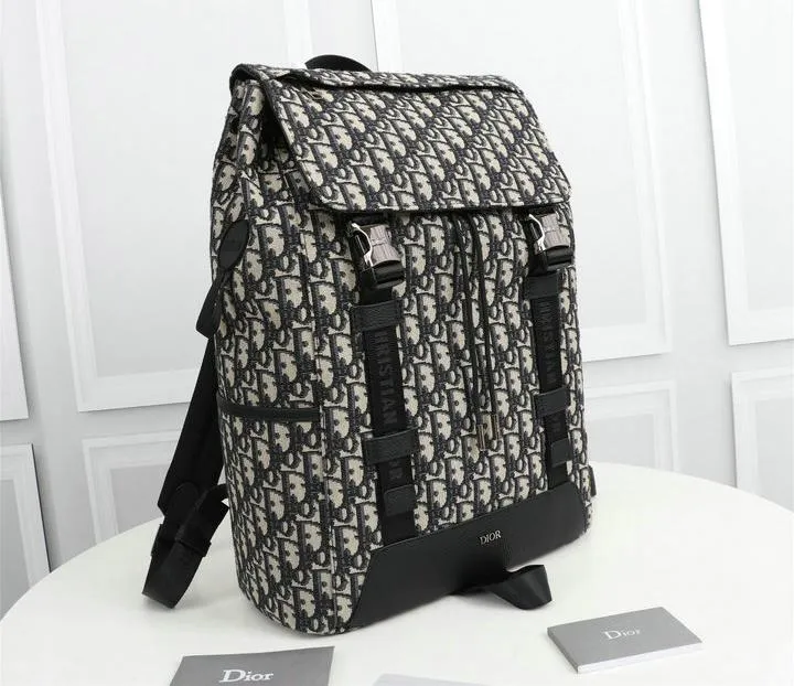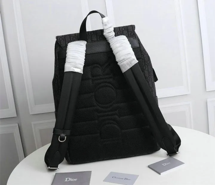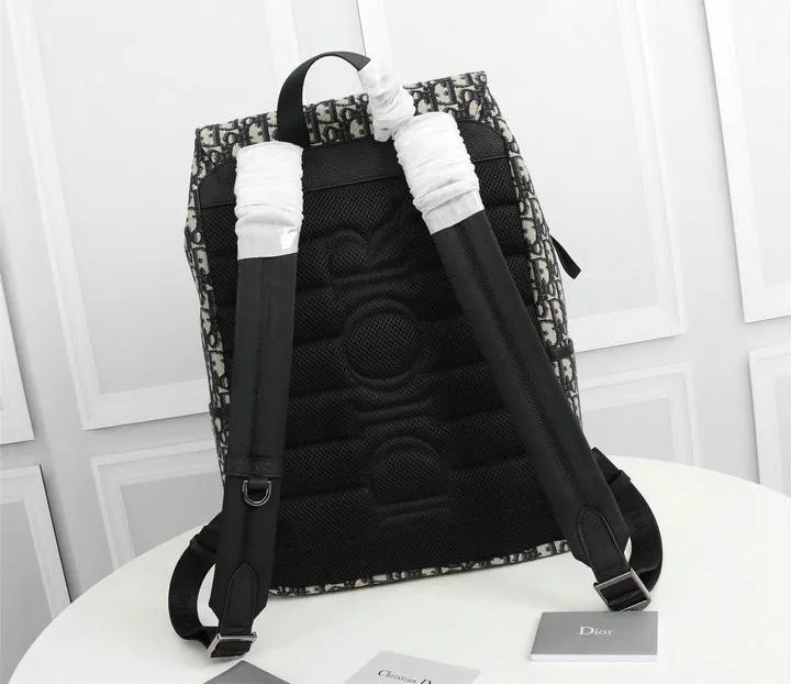 Dior 1:1 Mirror Replica Oblique Explorer Blue/Black Leather Backpack 42CM/16.5IN