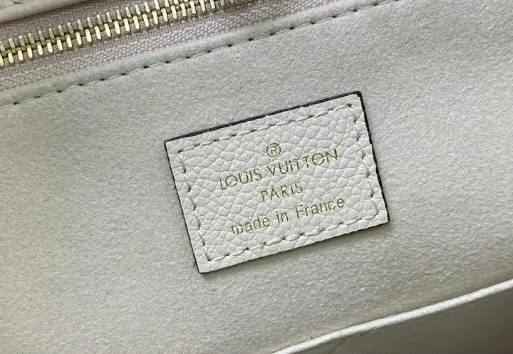 The Louis Vuitton 1:1 Mirror Replica OnTheGo MM is made from high-quality leather, mirroring the texture and feel of the original. The hardware, including zippers and clasps, is crafted from sturdy metal with a premium finish, closely replicating the look and durability of authentic Louis Vuitton fittings.