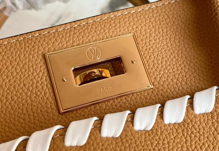 The replica Mahina On My Side measures 30.5 x 24.5 x 14 cm, matching the original Mahina On My Side proportions. It’s perfectly sized for daily use, fitting essentials comfortably without appearing bulky. The structured silhouette and dual top handles allow for versatile carrying options, including hand, elbow, or shoulder wear, offering both style and practicality.