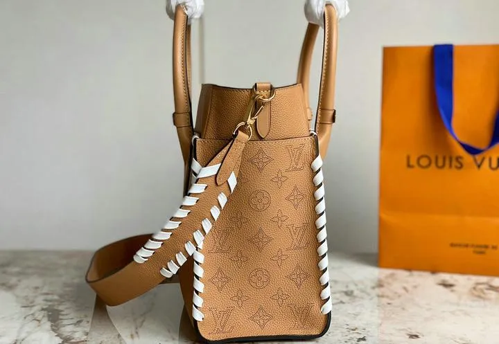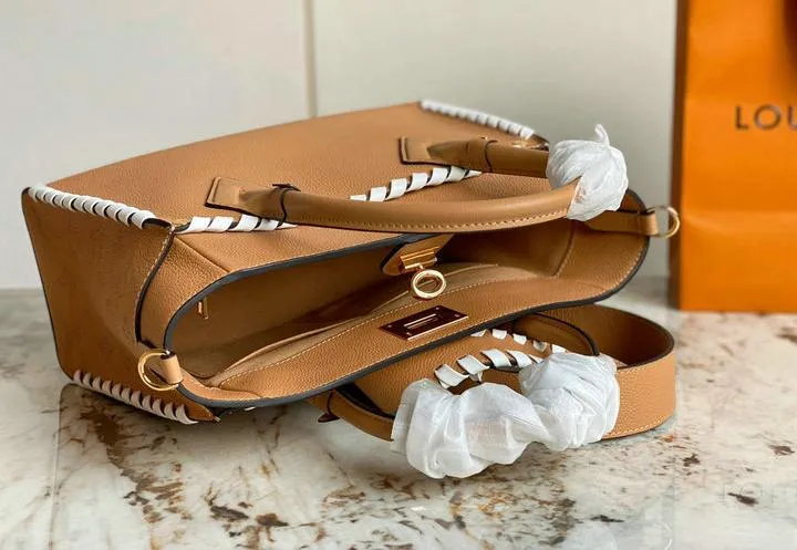This tote bag is presented in elegant packaging, closely resembling the official Louis Vuitton experience. It typically includes a branded dust bag, care booklet, and authenticity card. These thoughtful additions enhance the presentation and help protect the bag, making it a delightful option for personal use or as a gift.
