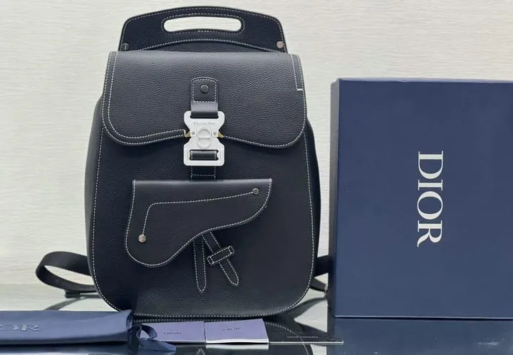 Dior 1:1 Mirror Replica Saddle Detail Black Gallop Backpack 40CM/15.7IN