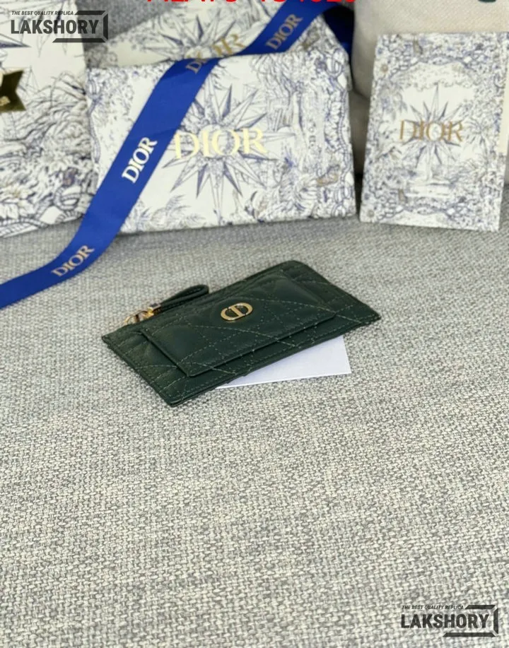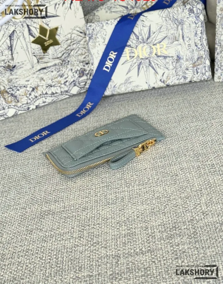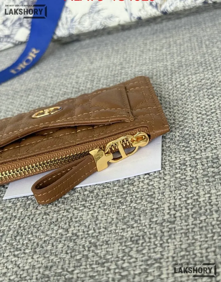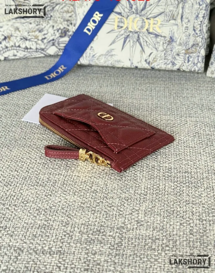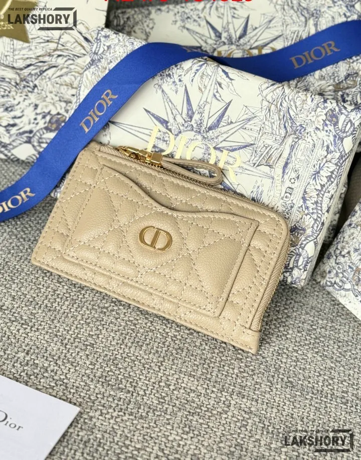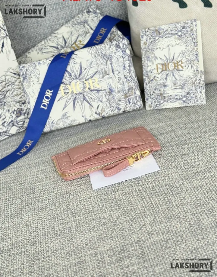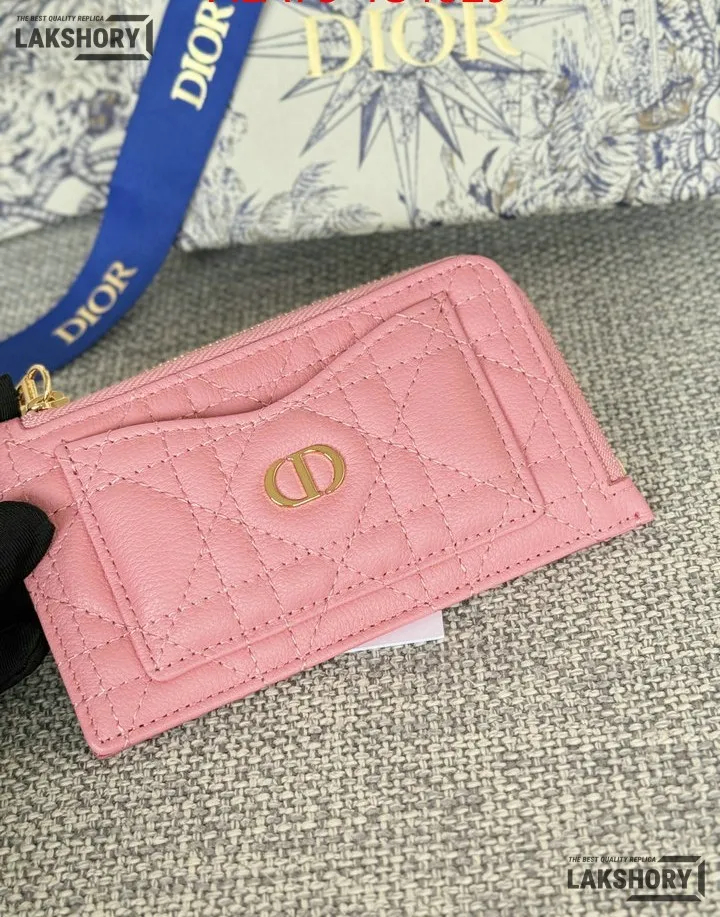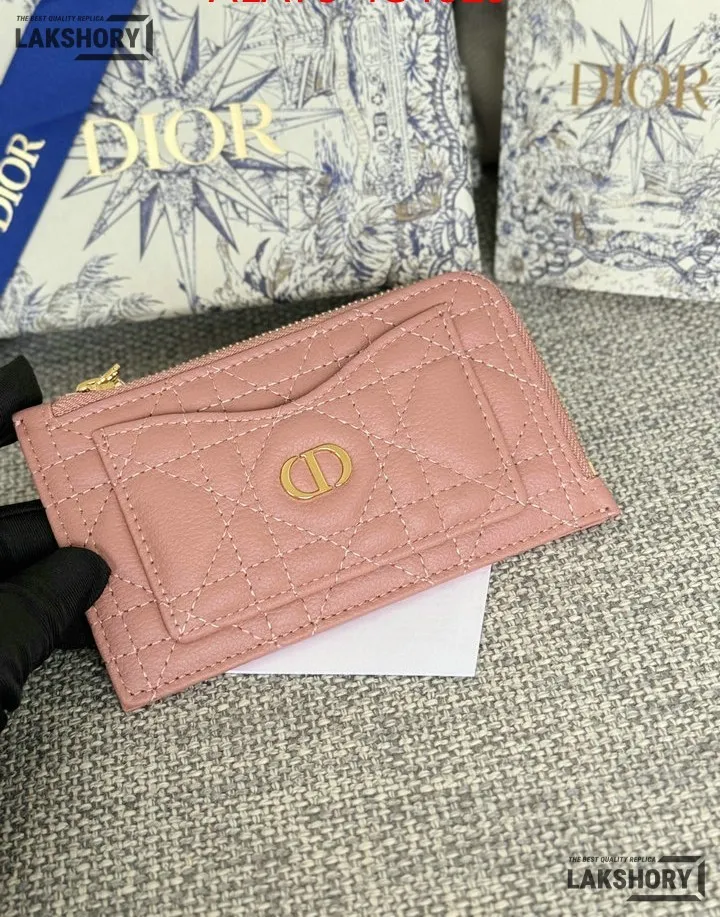 Dior 1:1 Mirror Replica Supple Calfskin Cannage Caro Cosmos Zipped Card Holder 13.5CM/5.3IN