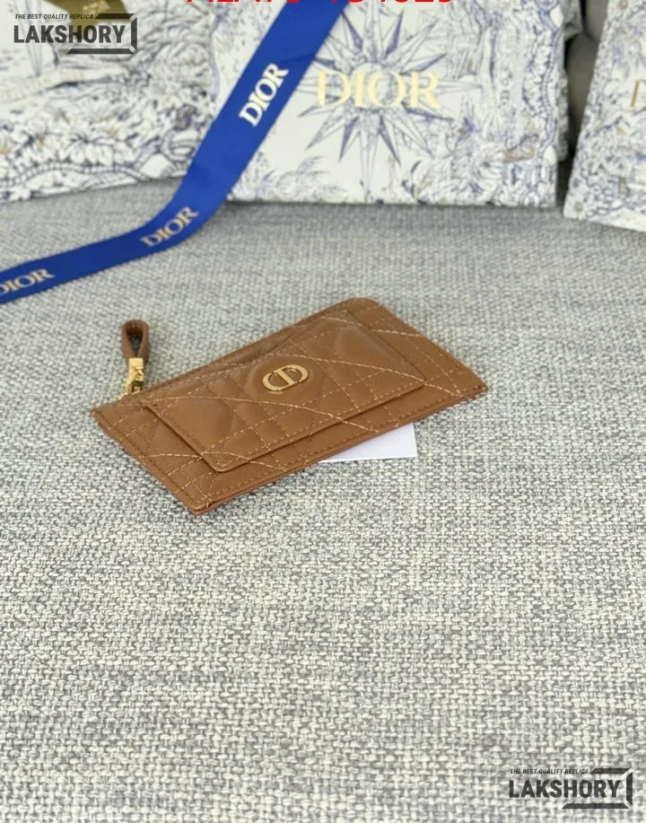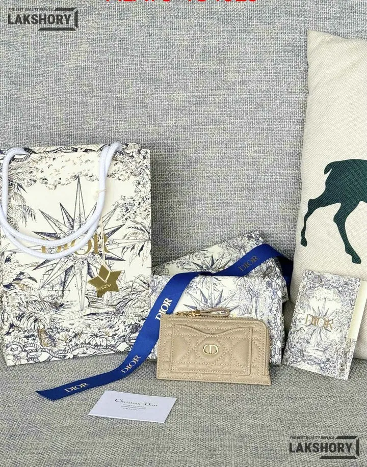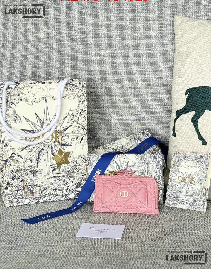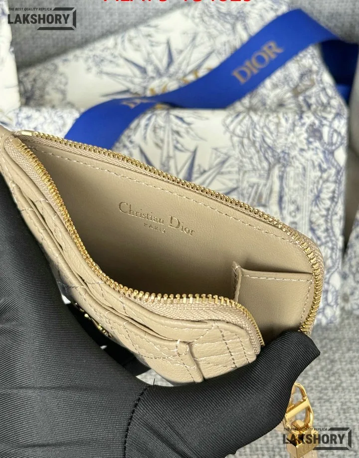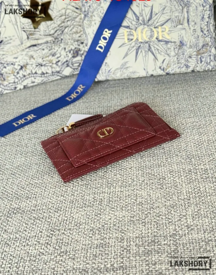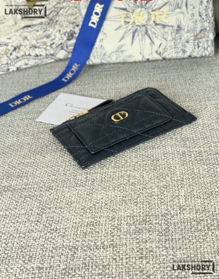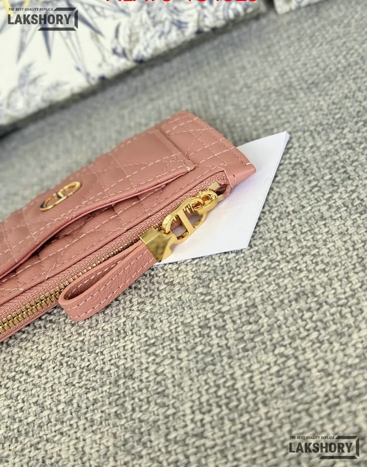 Dior 1:1 Mirror Replica Supple Calfskin Cannage Caro Cosmos Zipped Card Holder 13.5CM/5.3IN