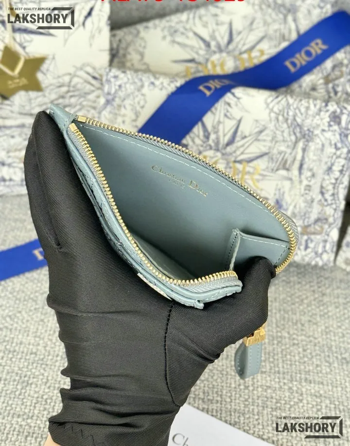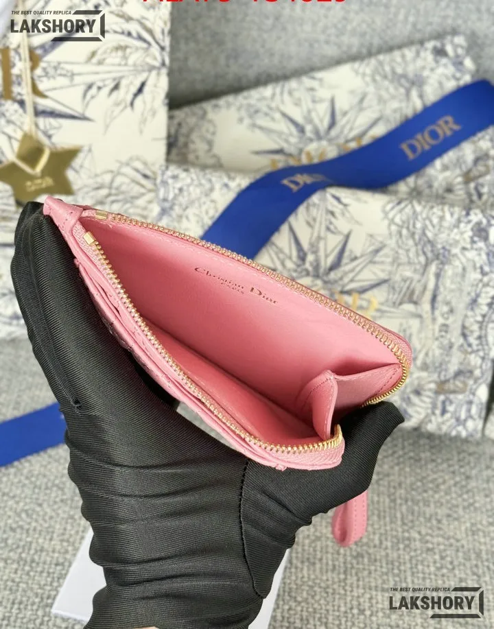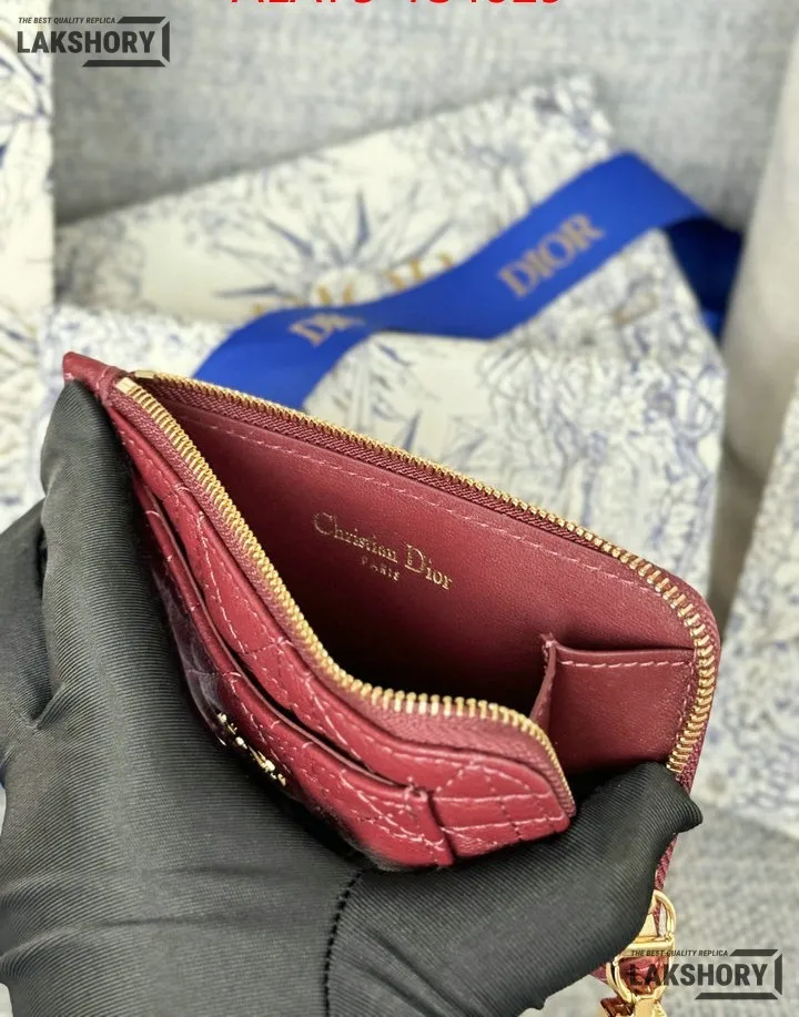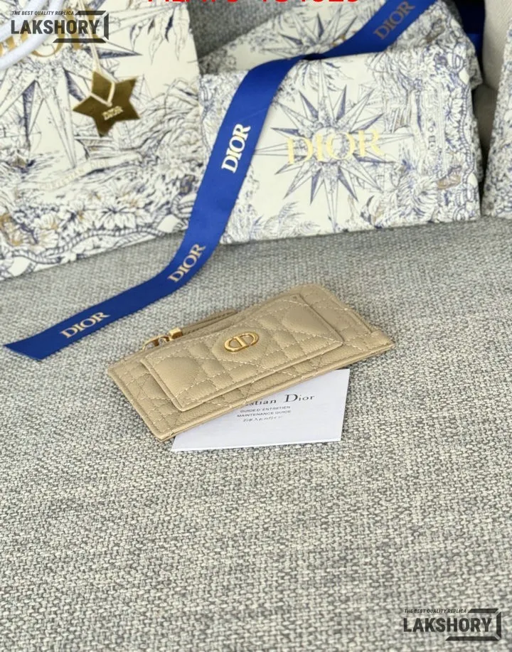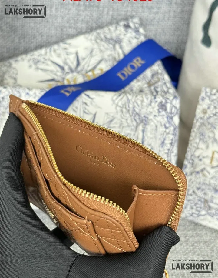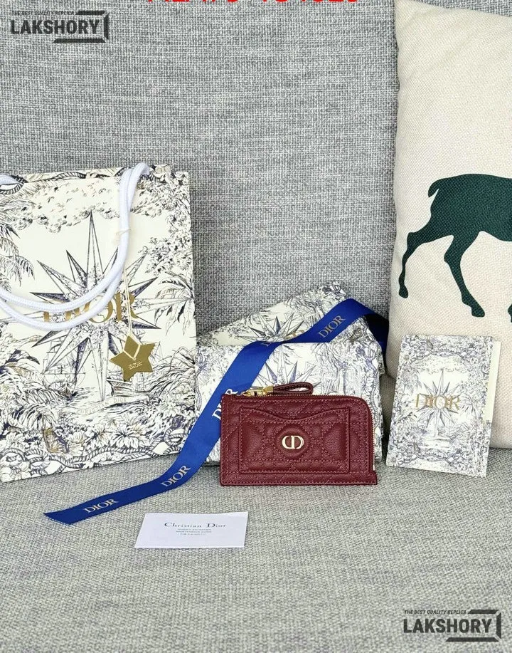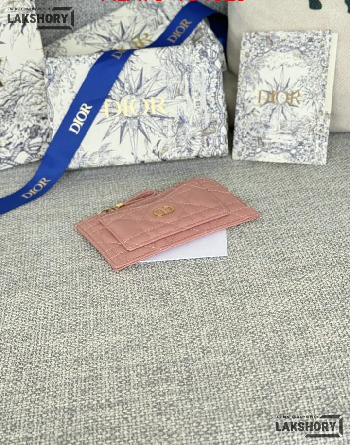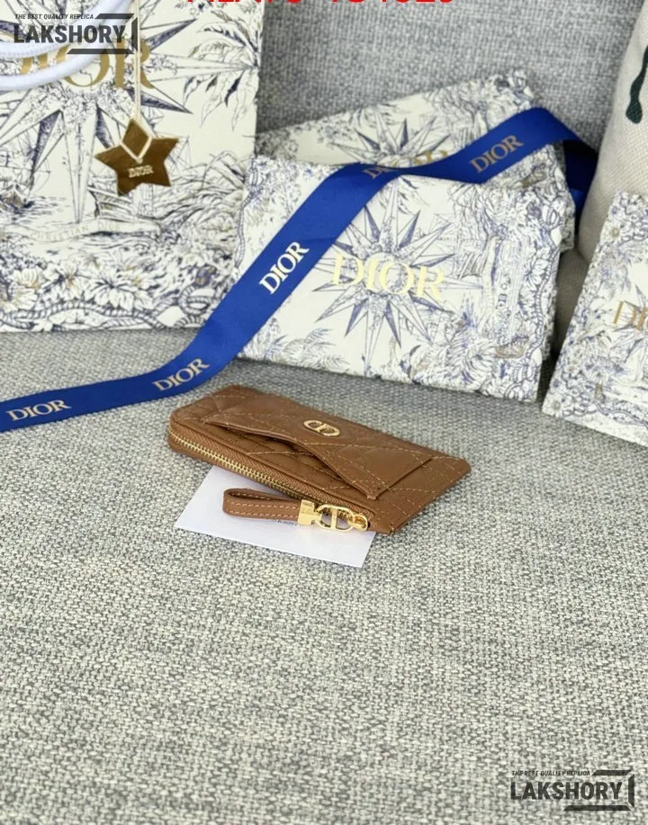 Dior 1:1 Mirror Replica Supple Calfskin Cannage Caro Cosmos Zipped Card Holder 13.5CM/5.3IN