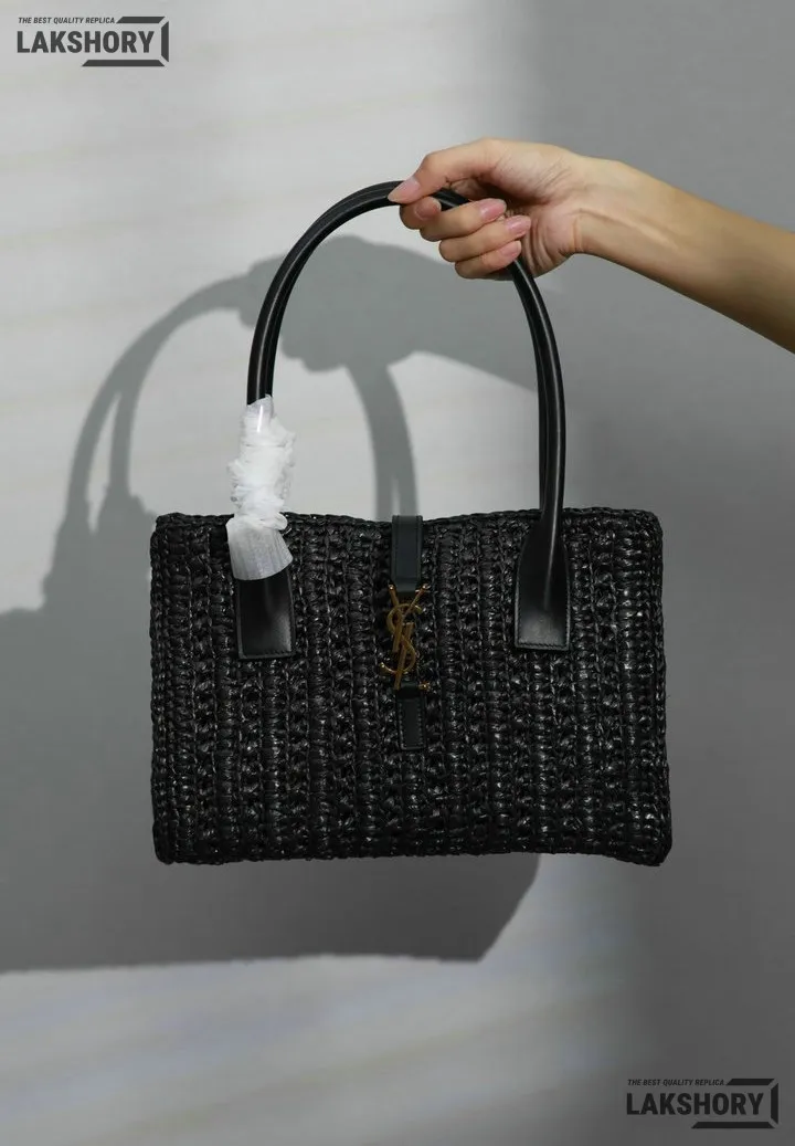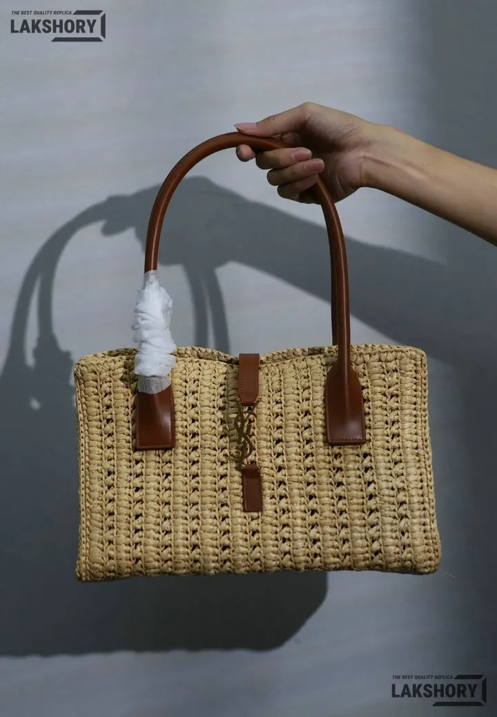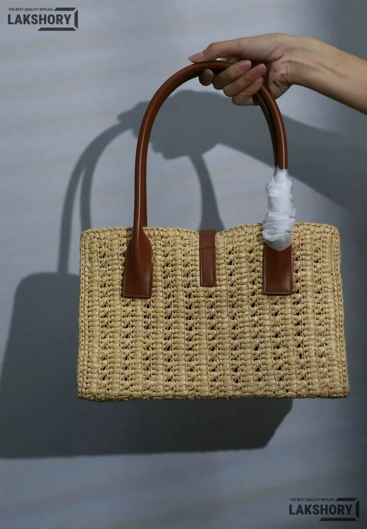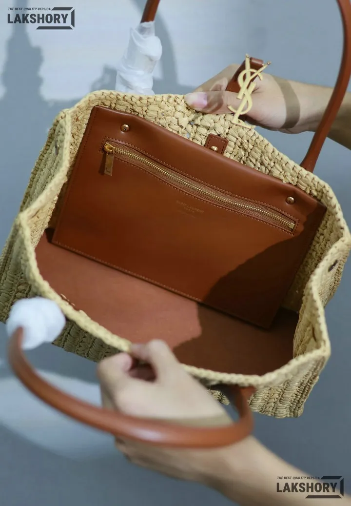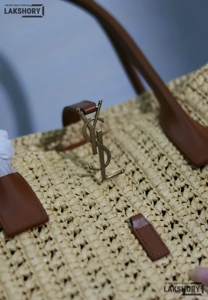 YSL 1:1 Mirror Replica Calfskin Panier Rectangle Raffia Tote Bag 29CM/11.4IN