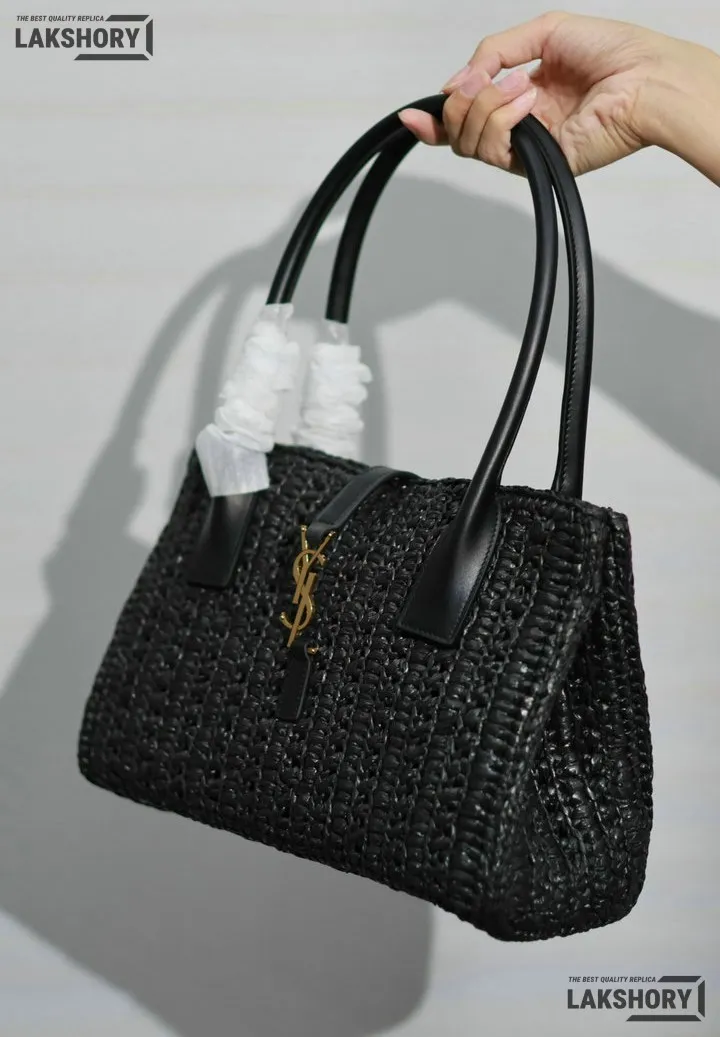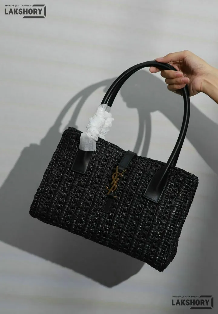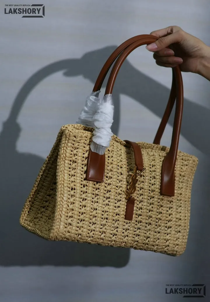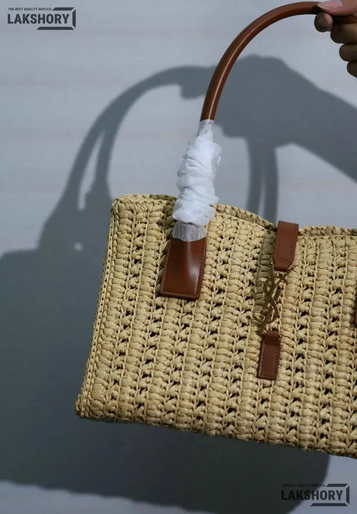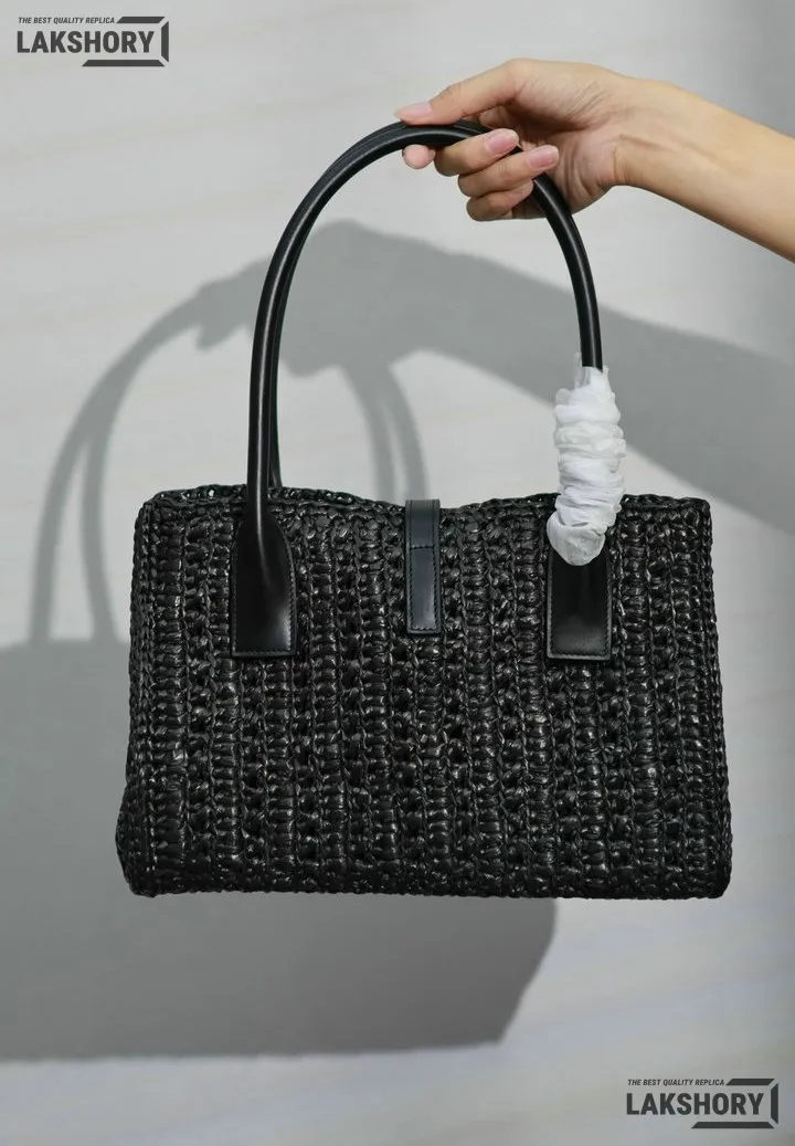 YSL 1:1 Mirror Replica Calfskin Panier Rectangle Raffia Tote Bag 29CM/11.4IN