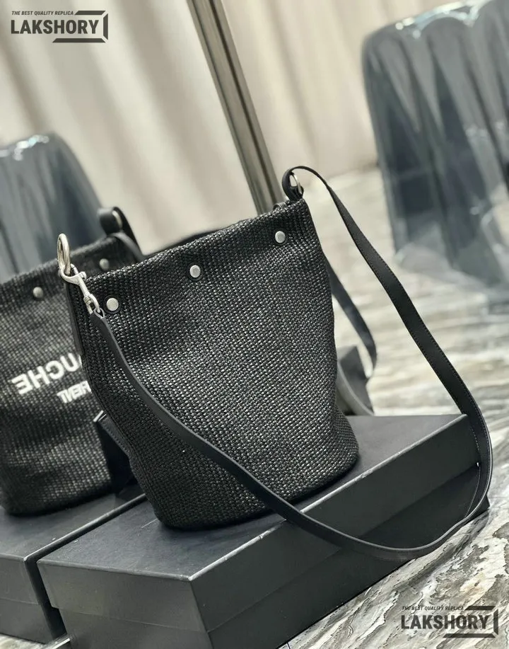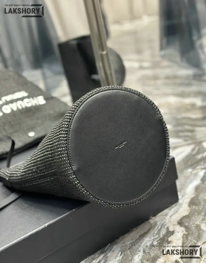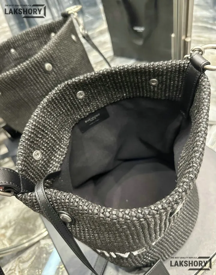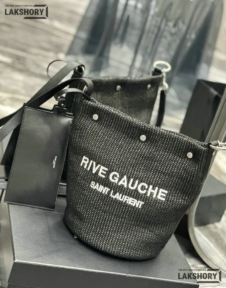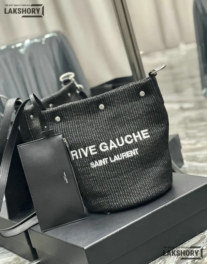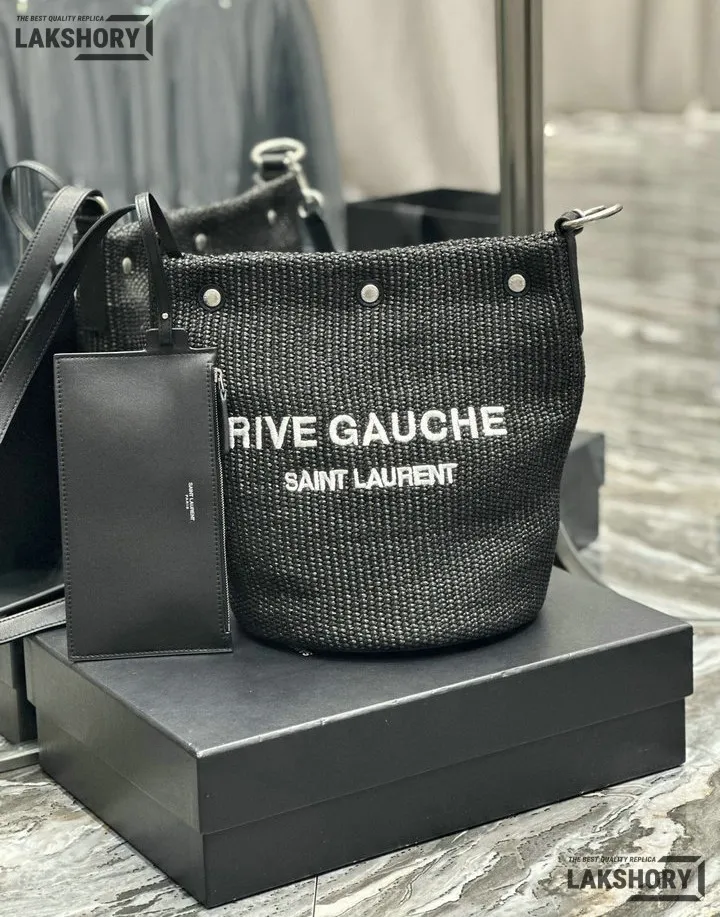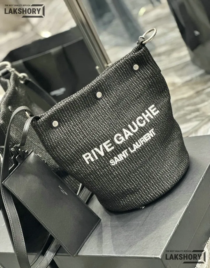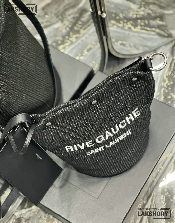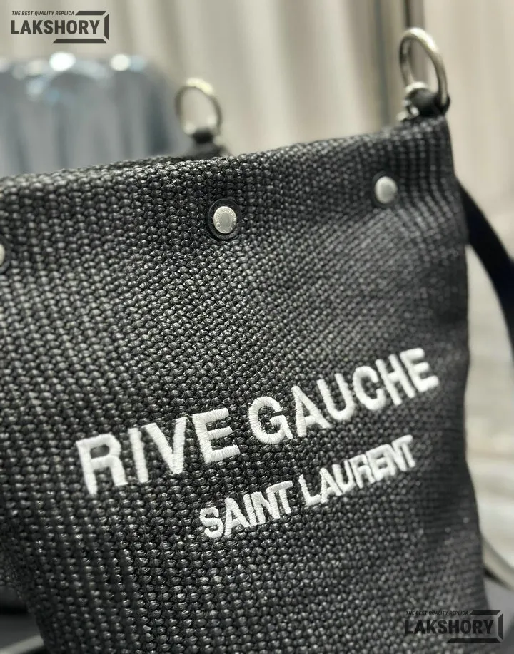 YSL 1:1 Mirror Replica Canvas Rive Gauche Bucket Bag Black 20CM/7.9IN