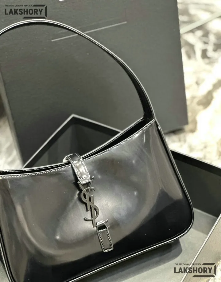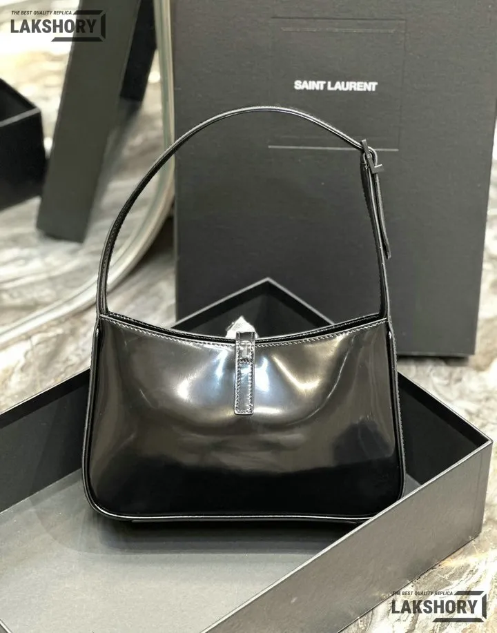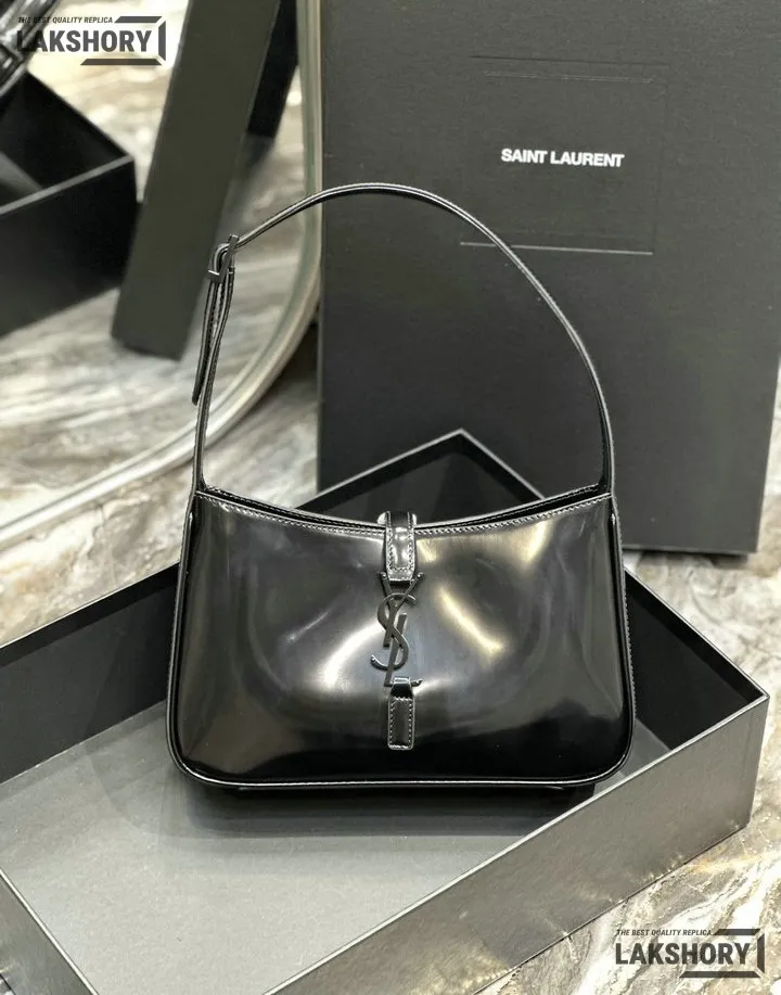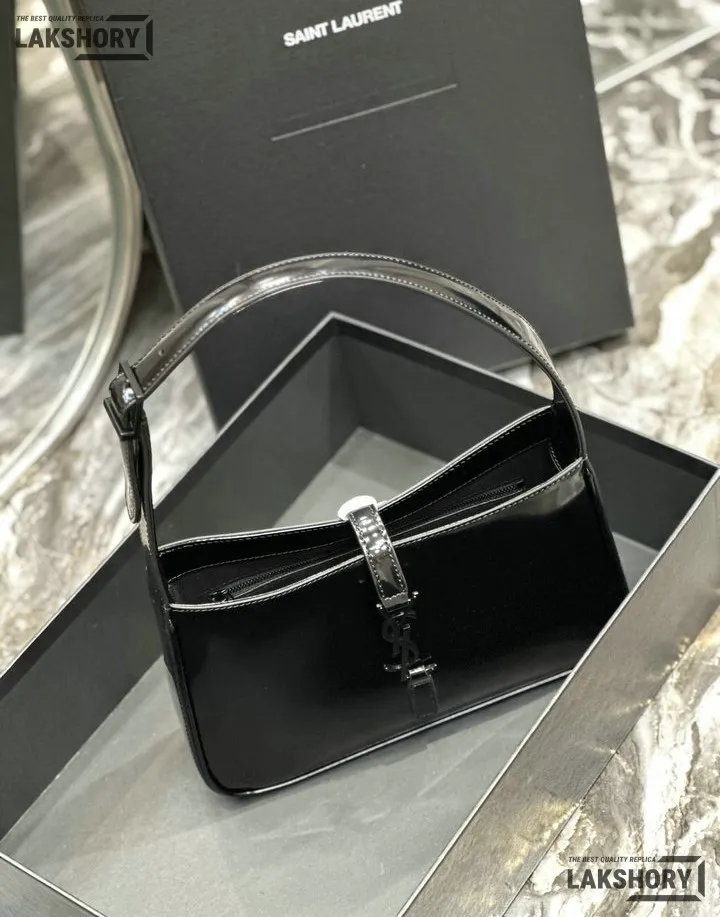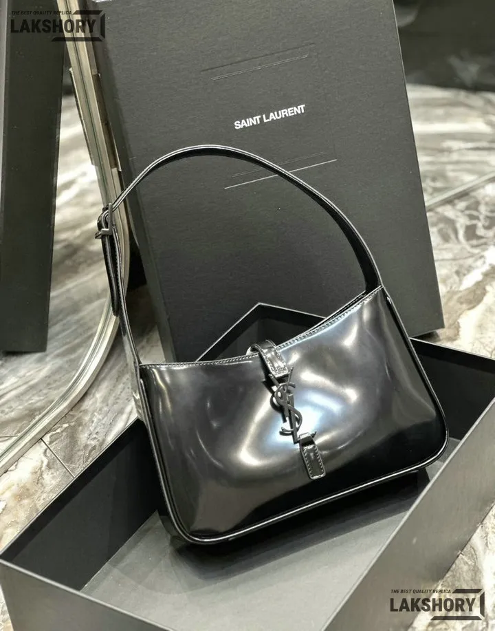 YSL 1:1 Mirror Replica Cowhide Le 5 À 7 Hobo Bag Black 25CM/9.8IN
