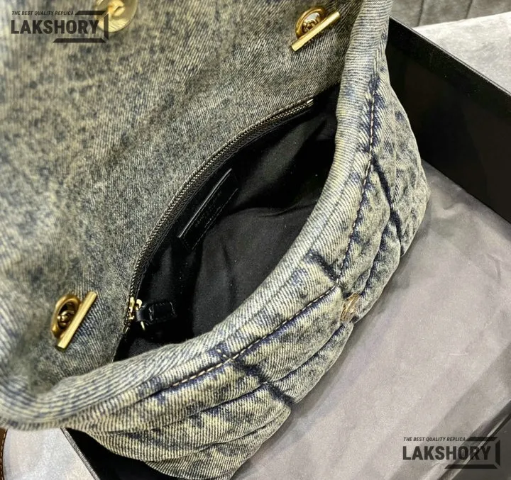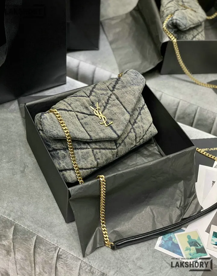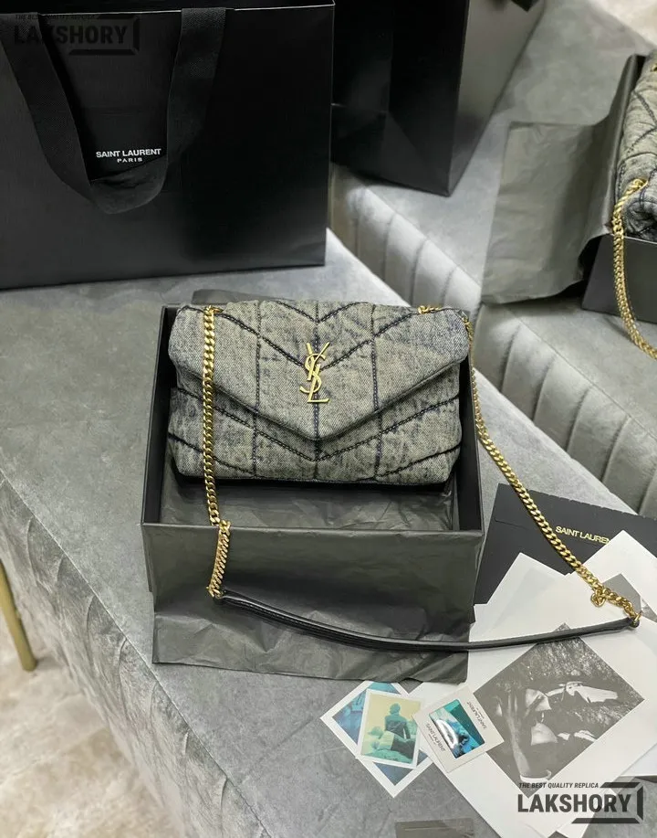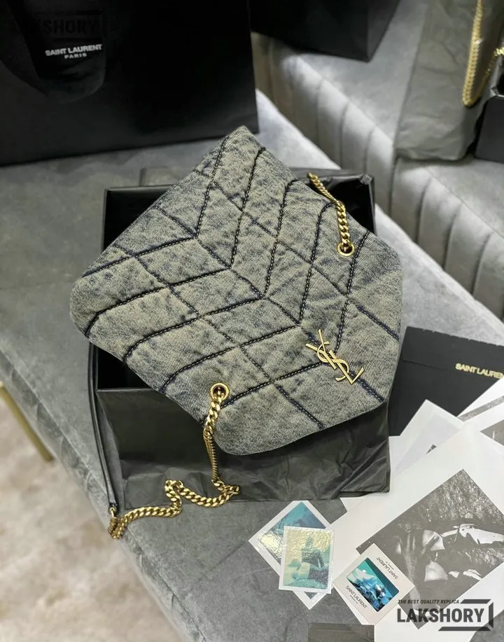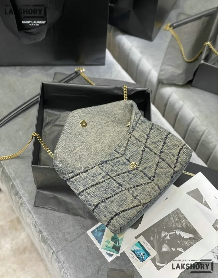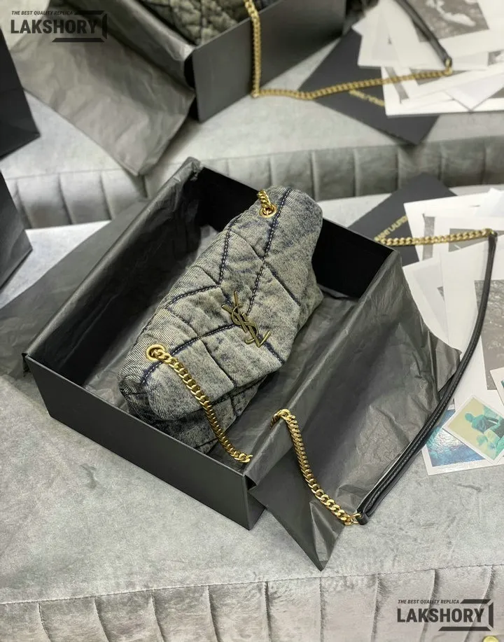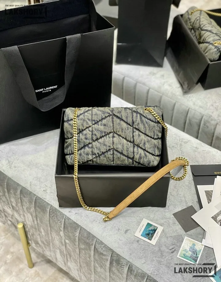 YSL 1:1 Mirror Replica Denim Toy Loulou Puffer Chain Bag 23CM/9.1IN