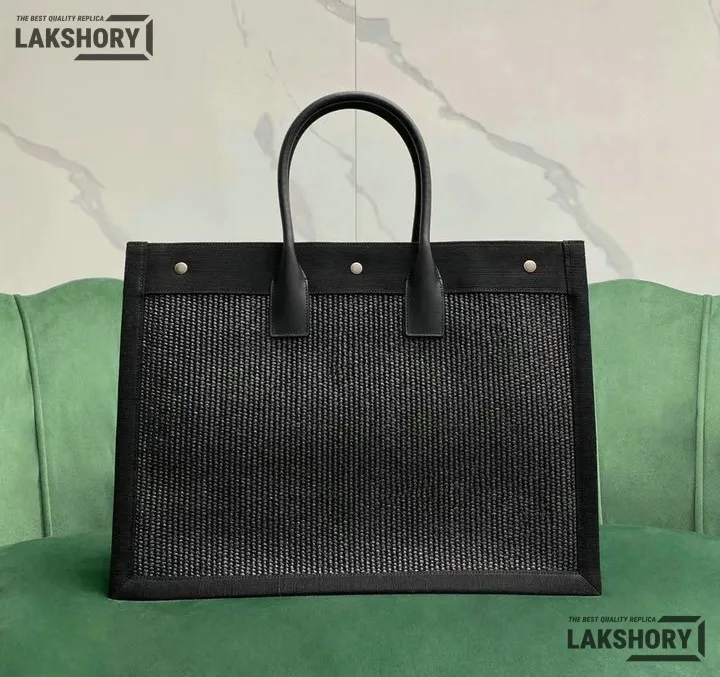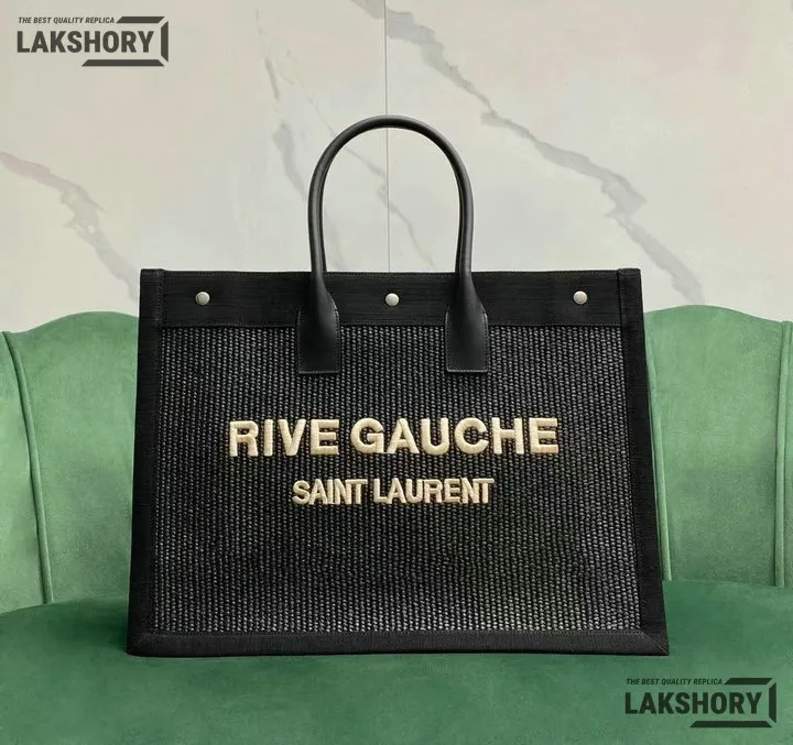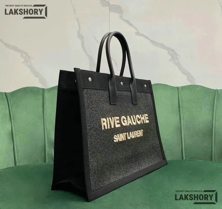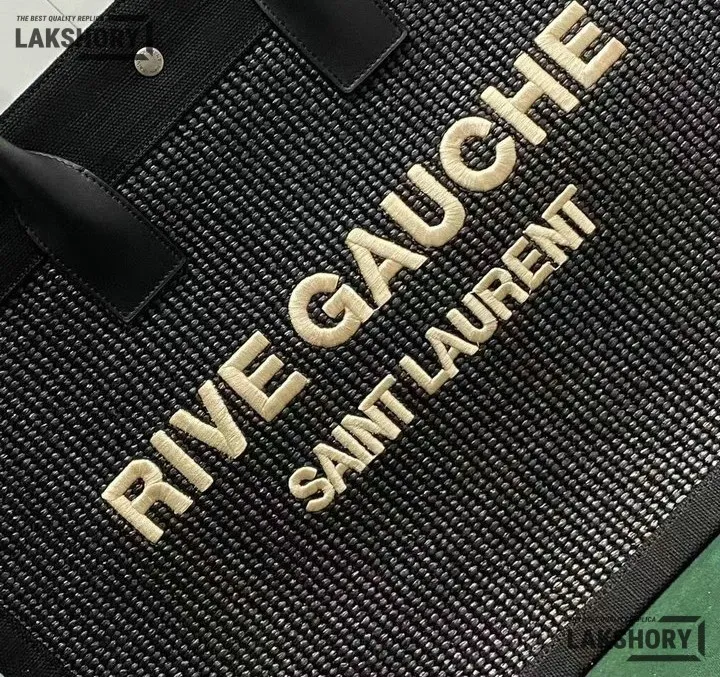 YSL 1:1 Mirror Replica Embroidered Rive Gauche Tote Black 48CM/18.9IN