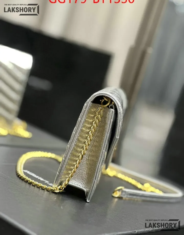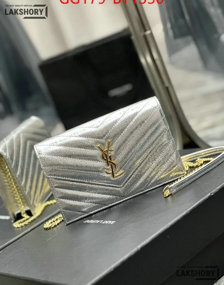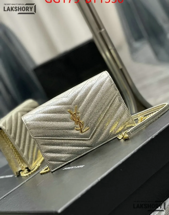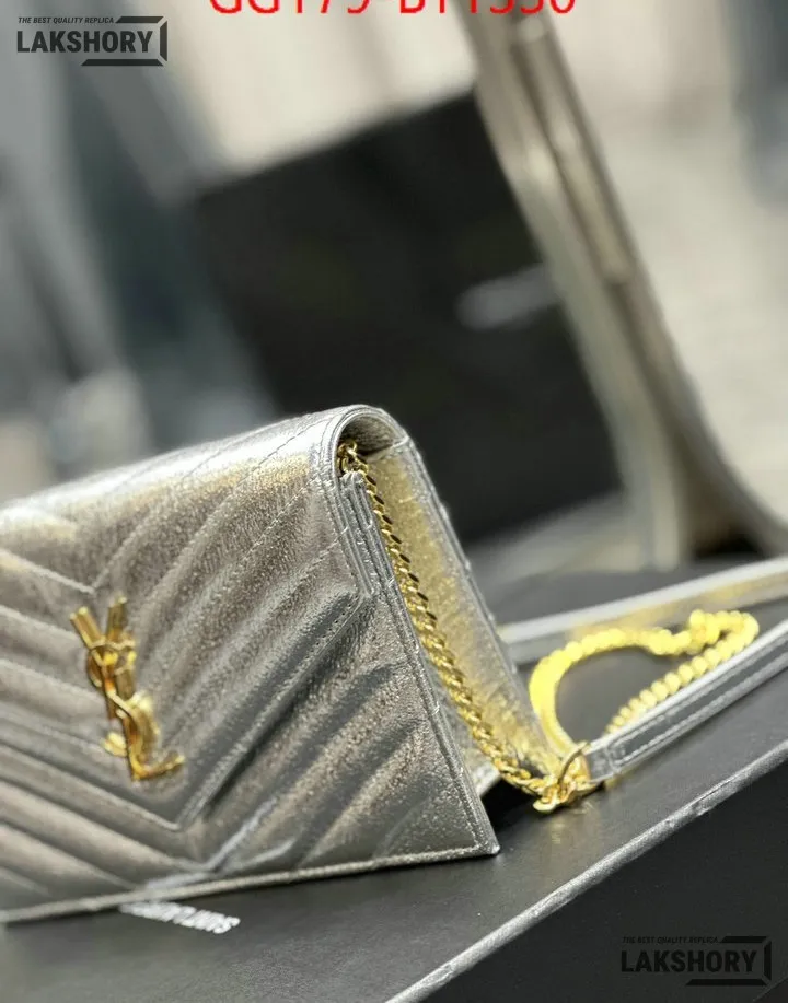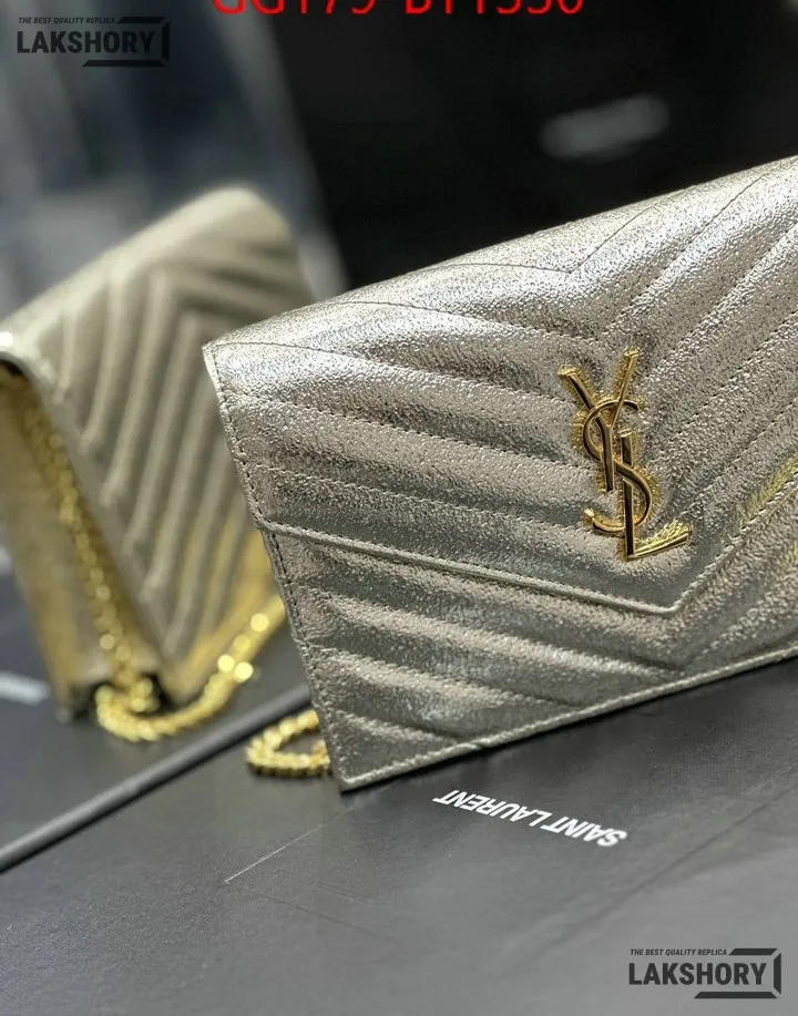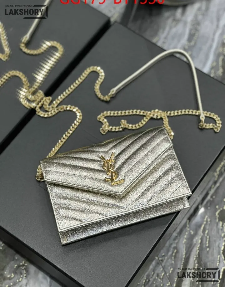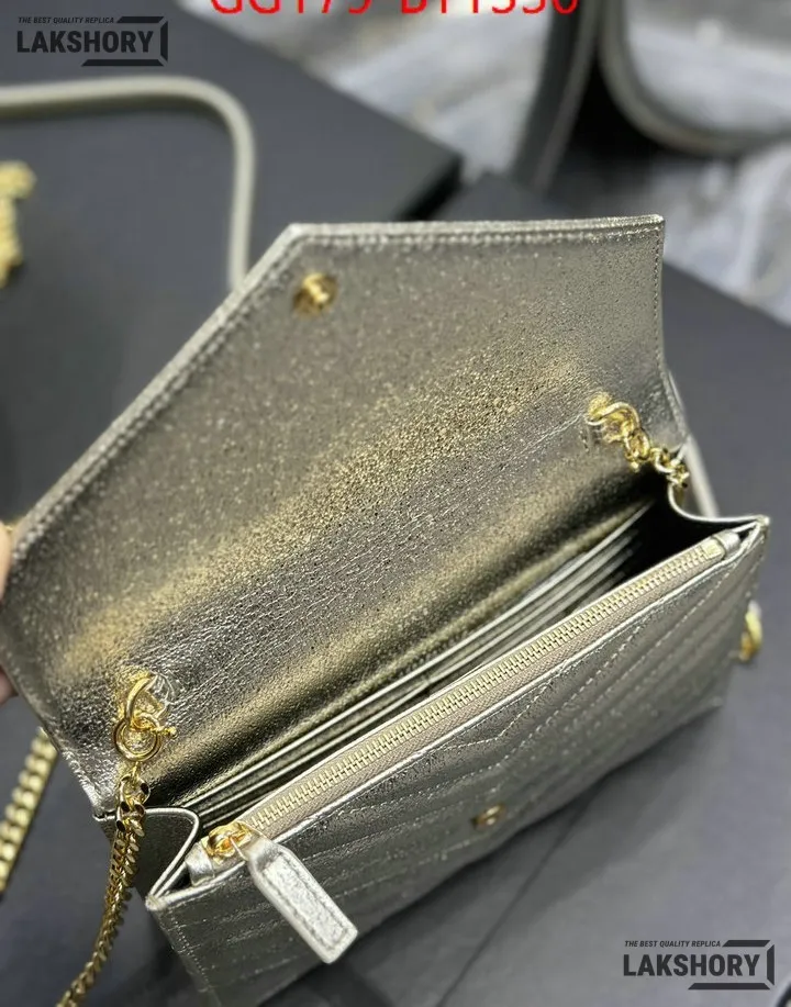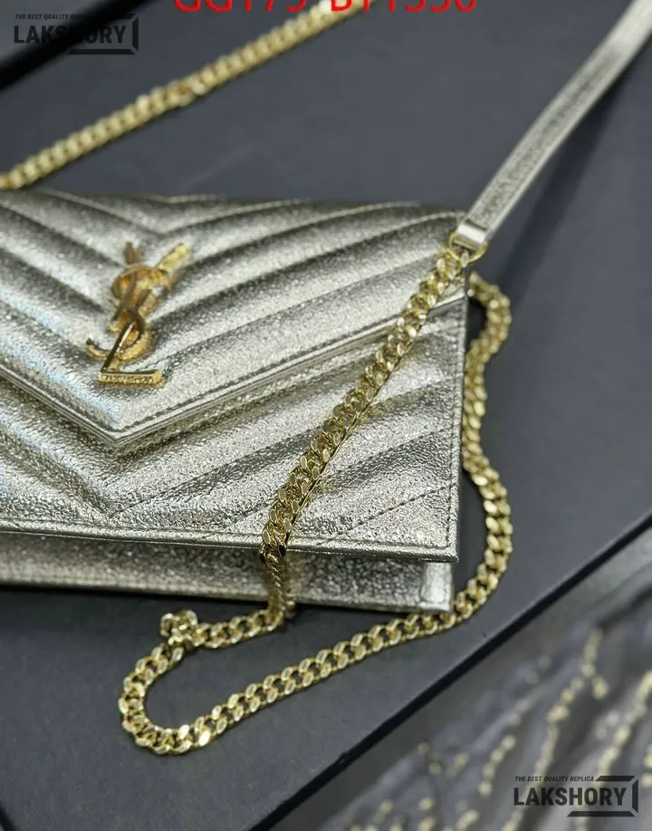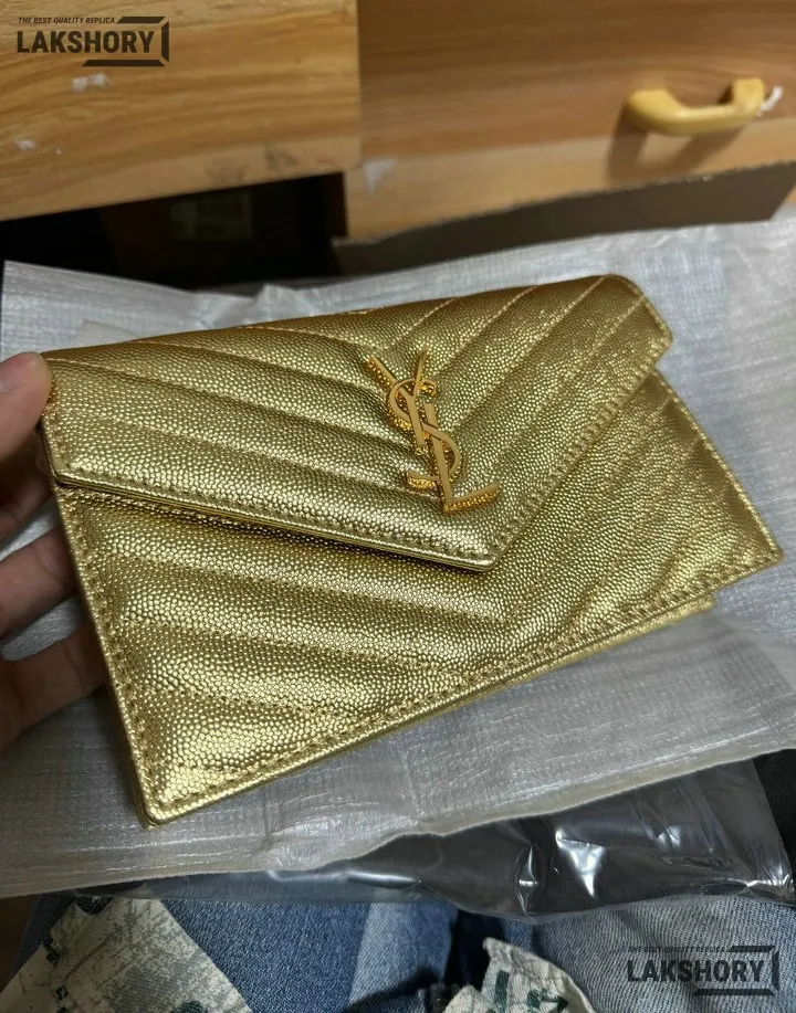 YSL 1:1 Mirror Replica Grain De Poudre Envelope Chain Wallet 19CM/7.5IN