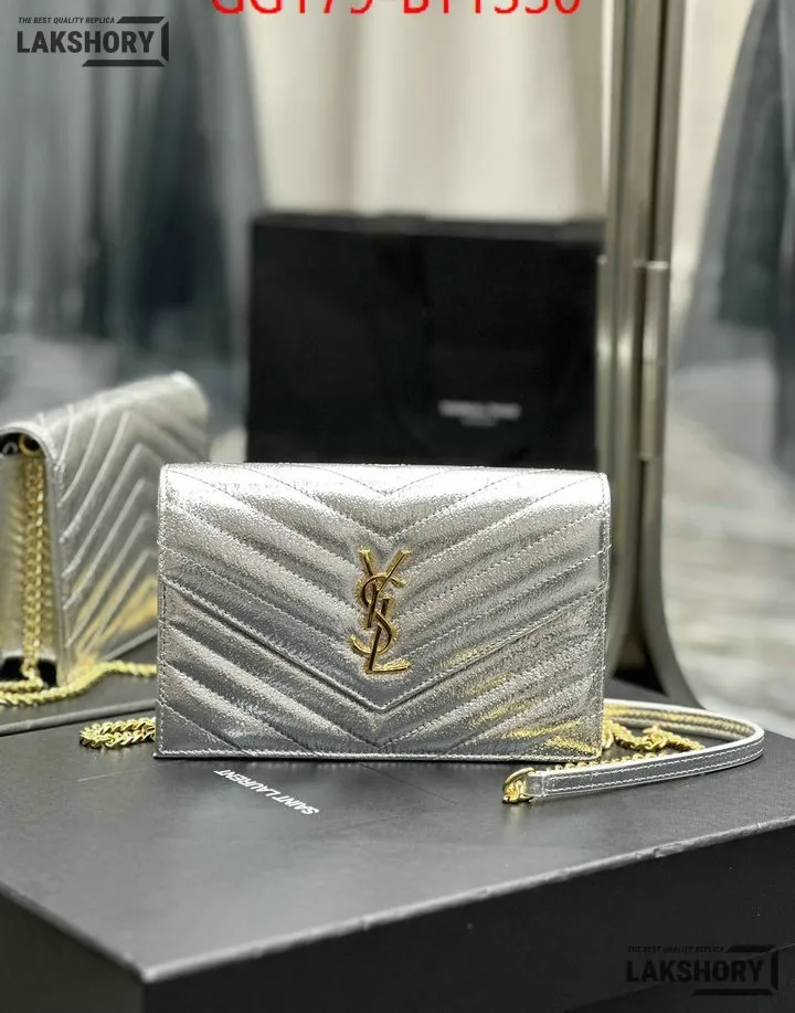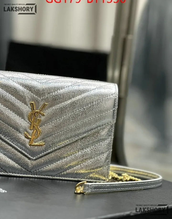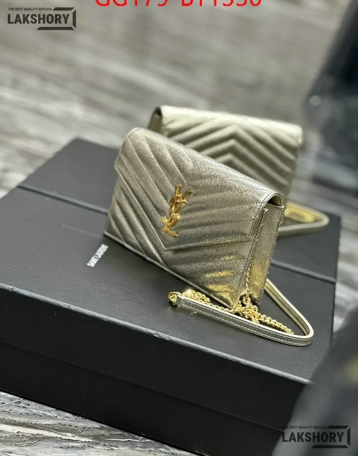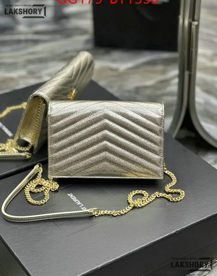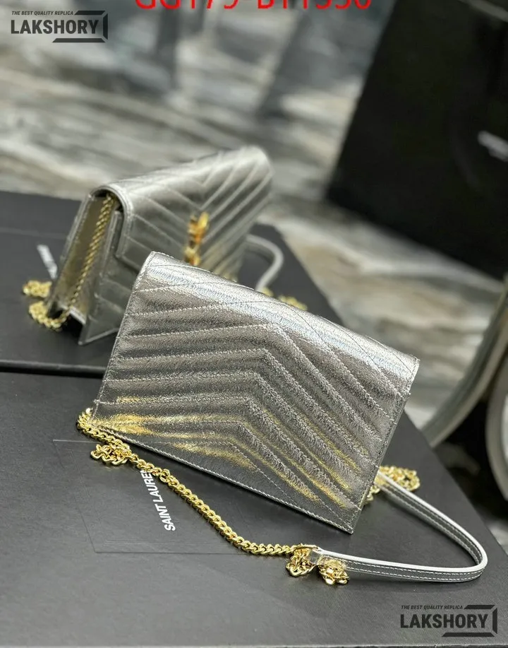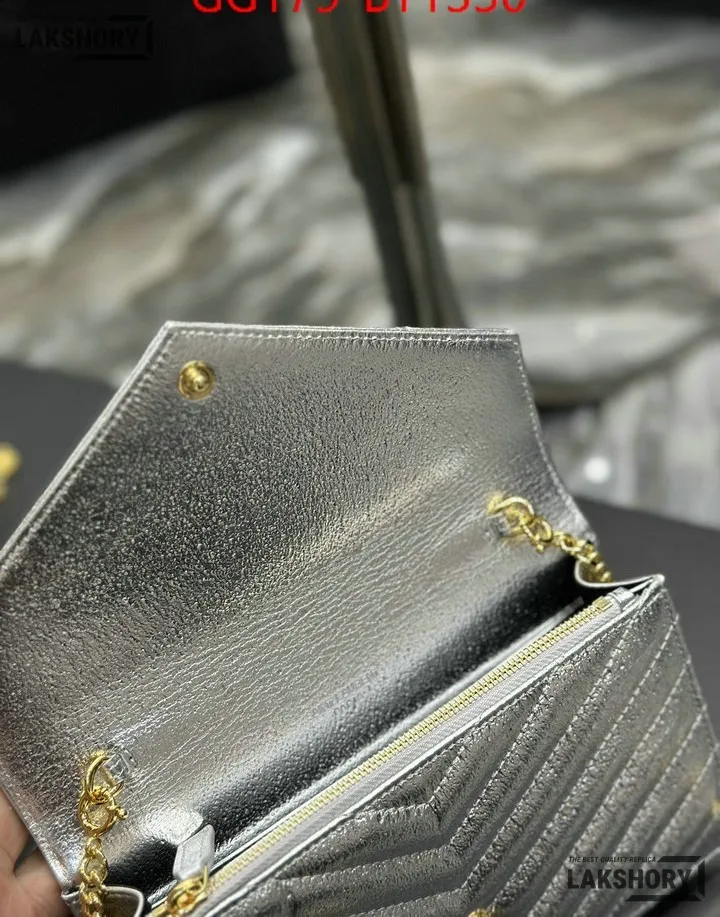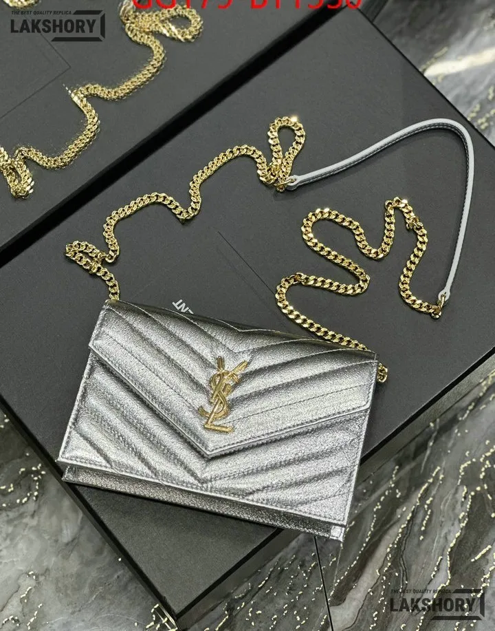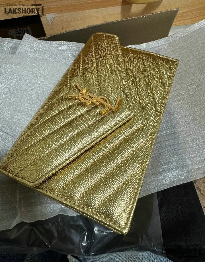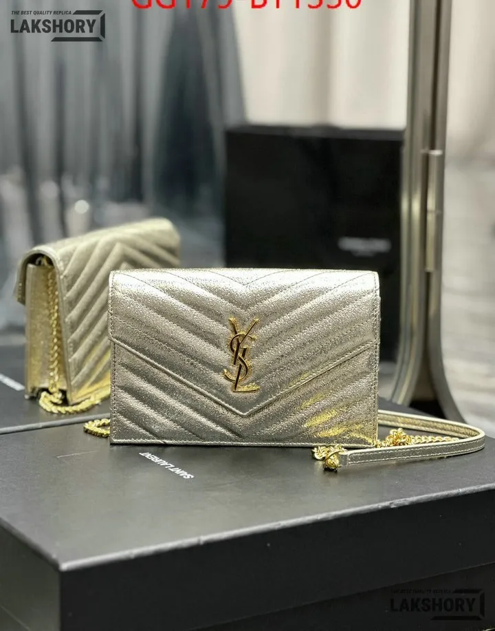 YSL 1:1 Mirror Replica Grain De Poudre Envelope Chain Wallet 19CM/7.5IN