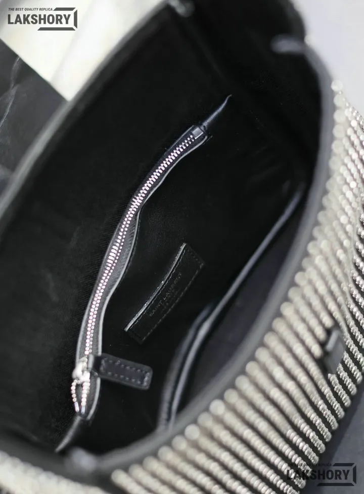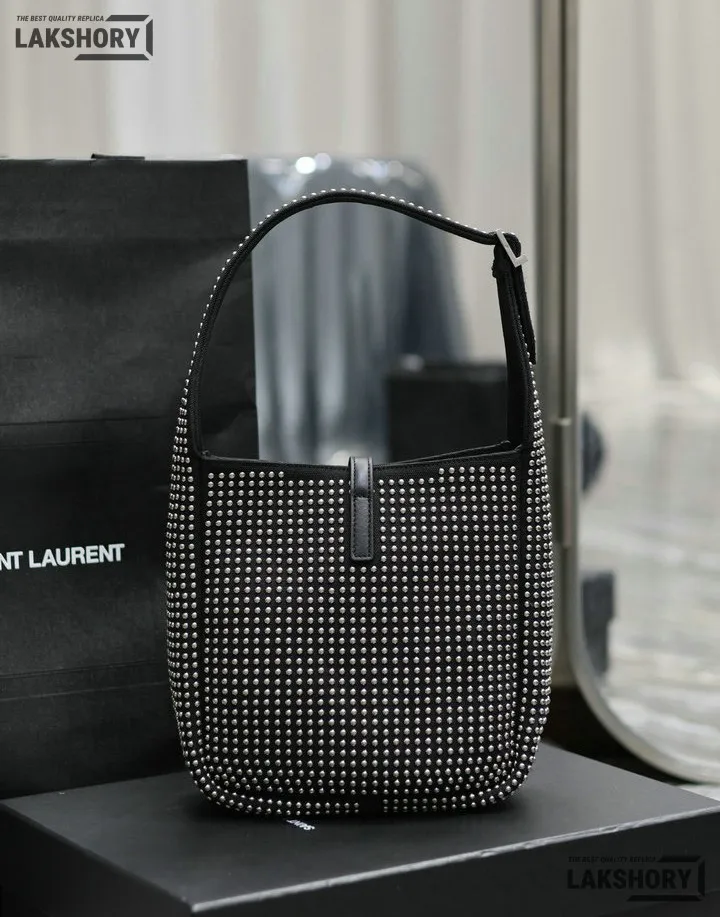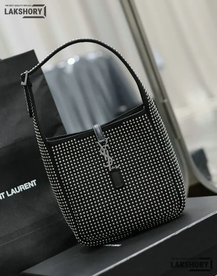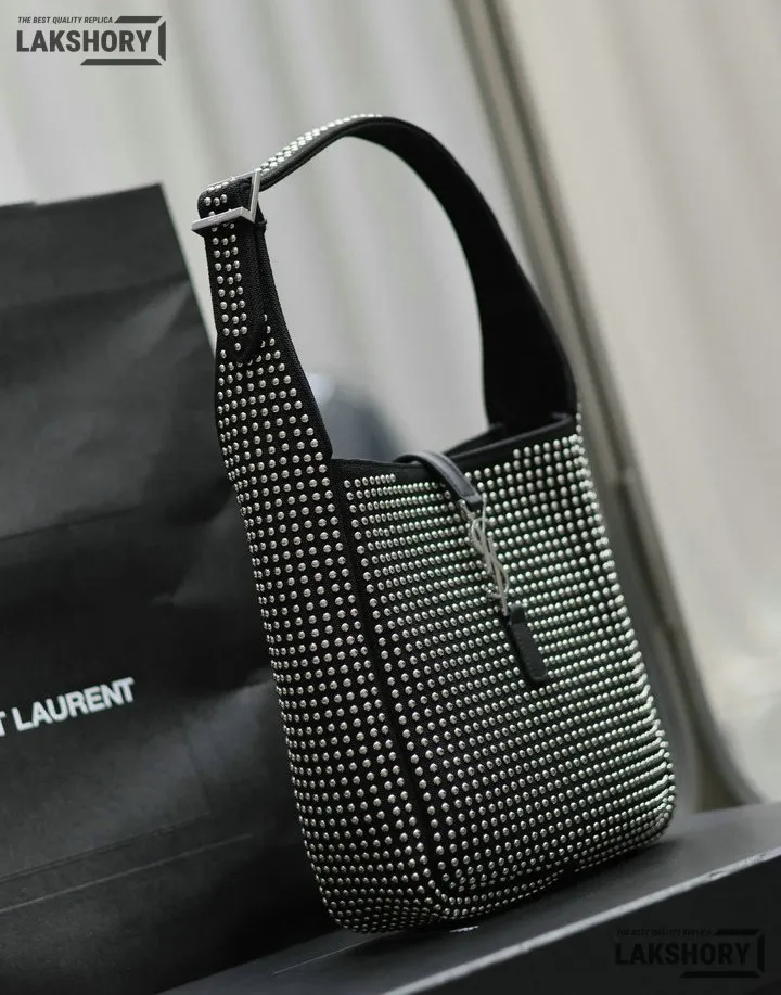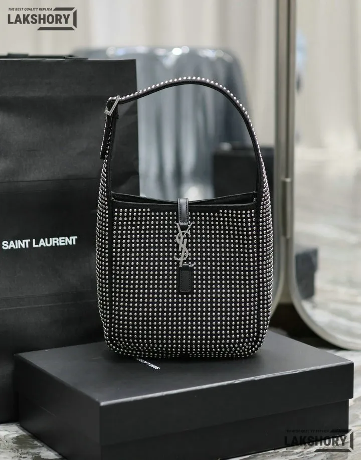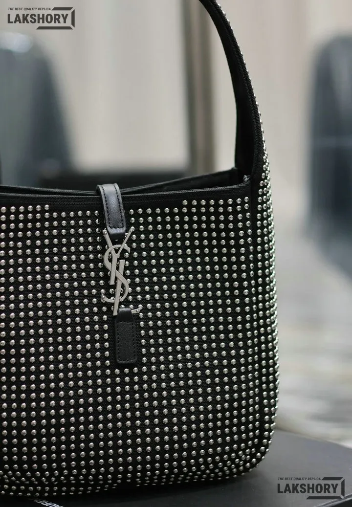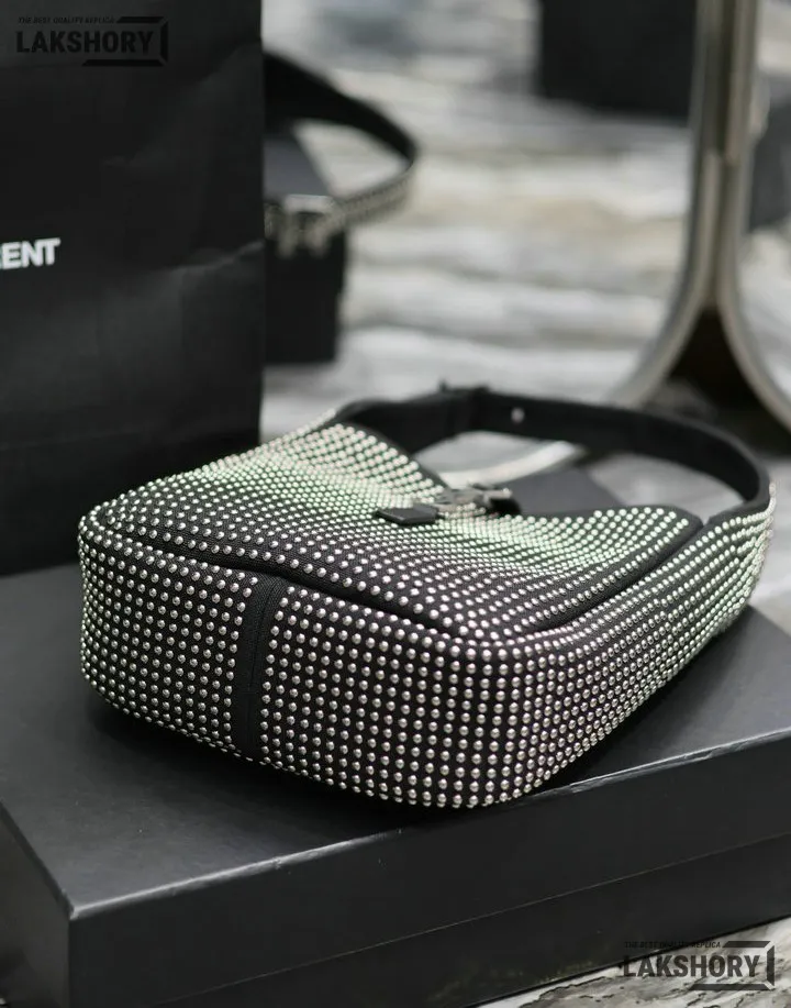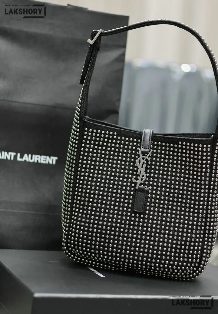 YSL 1:1 Mirror Replica Le 5 À 7 Studded Embellished Bag Black 23CM/9.1IN