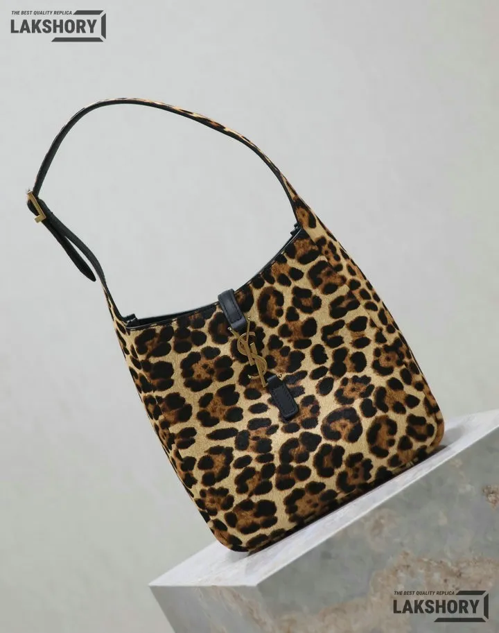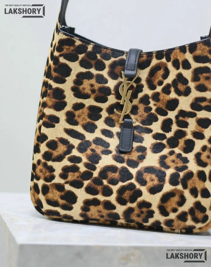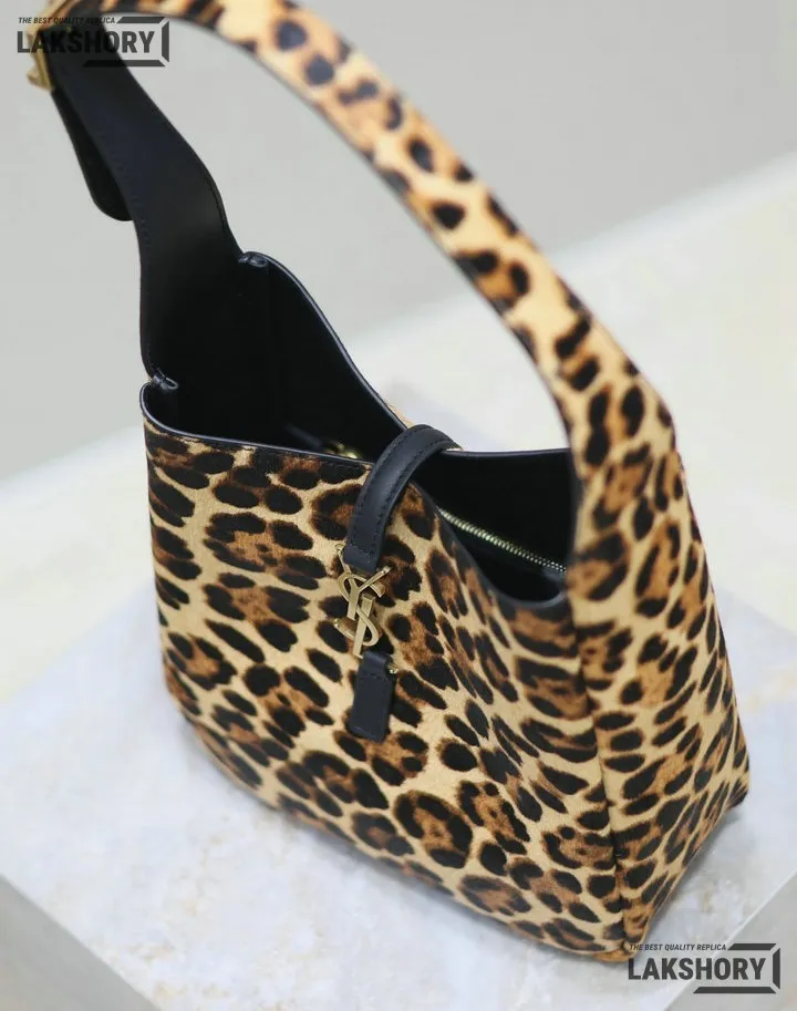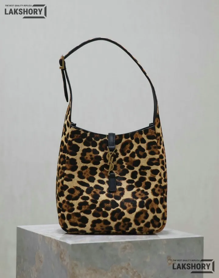 YSL 1:1 Mirror Replica Leopard Print Le 5 A 7 Soft Hobo Bag 23CM/9.1IN