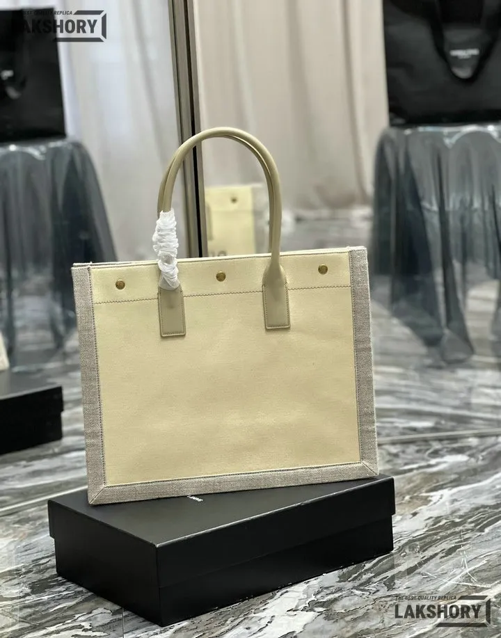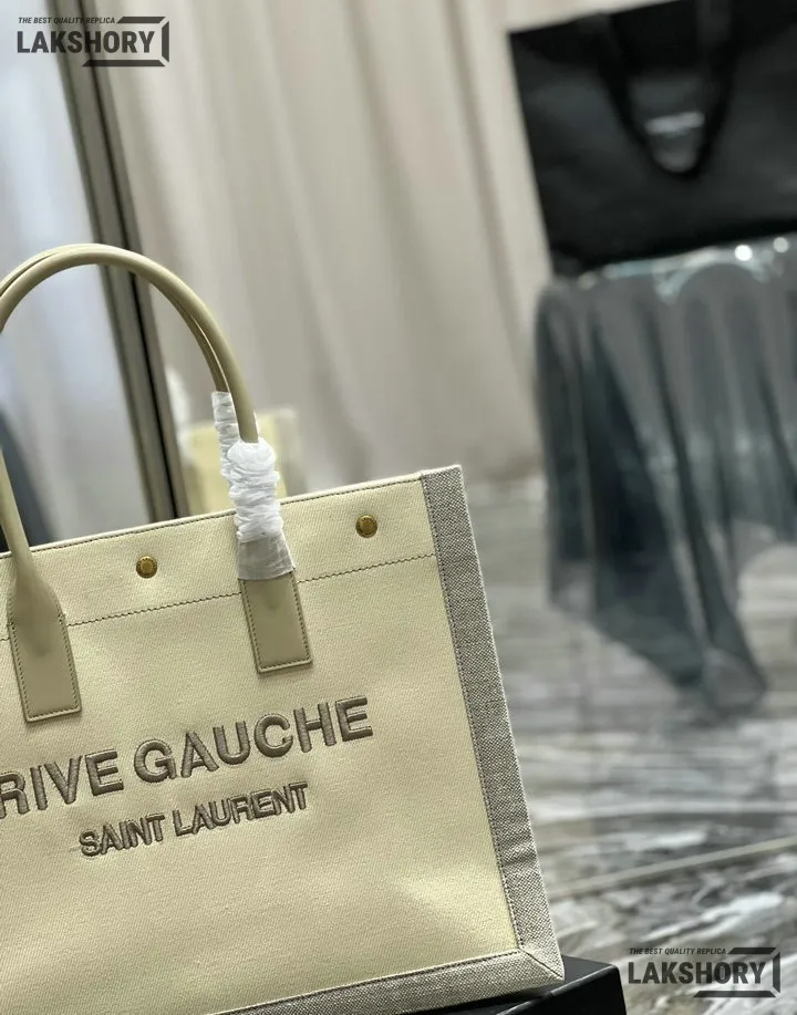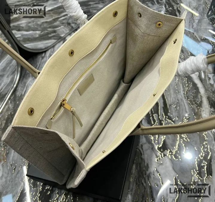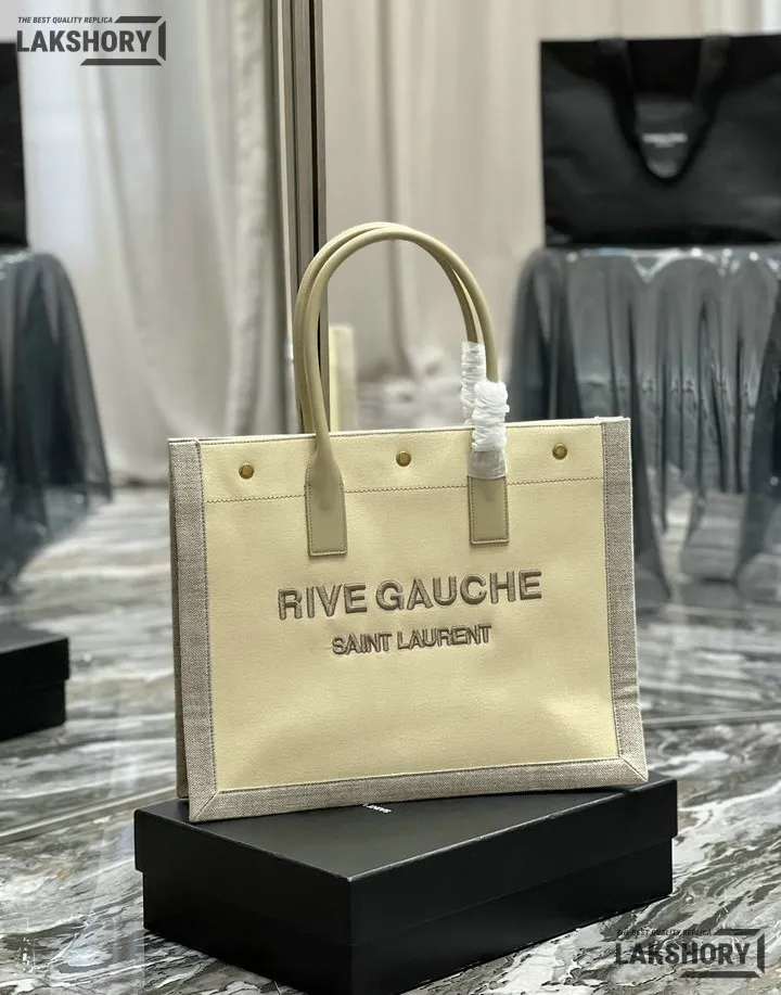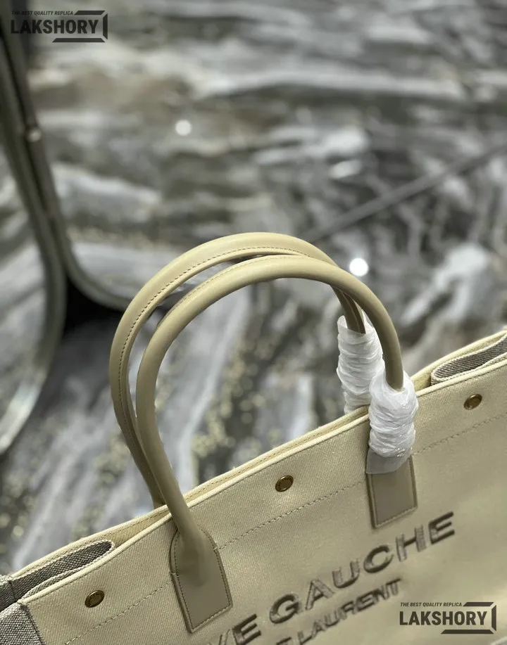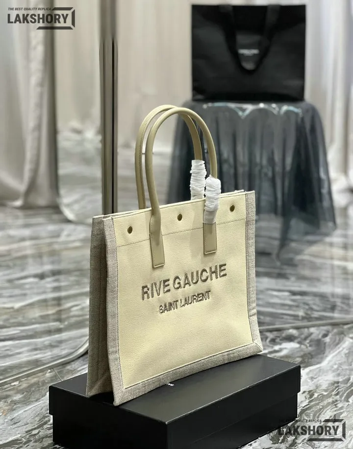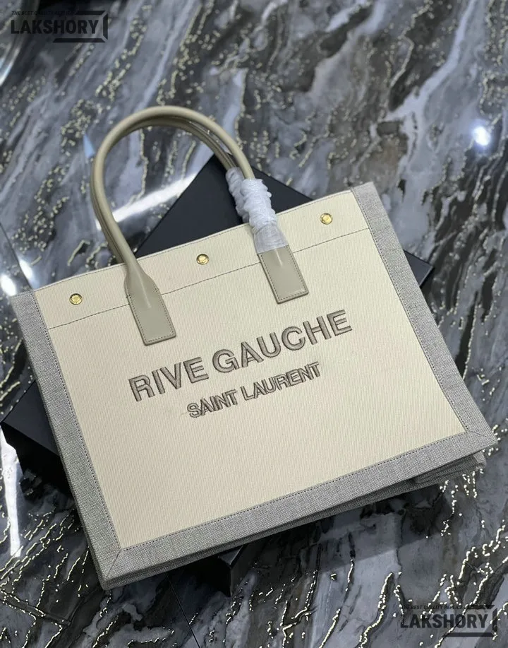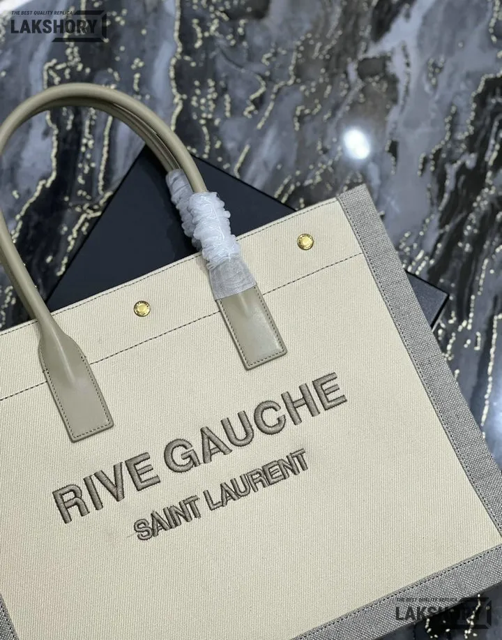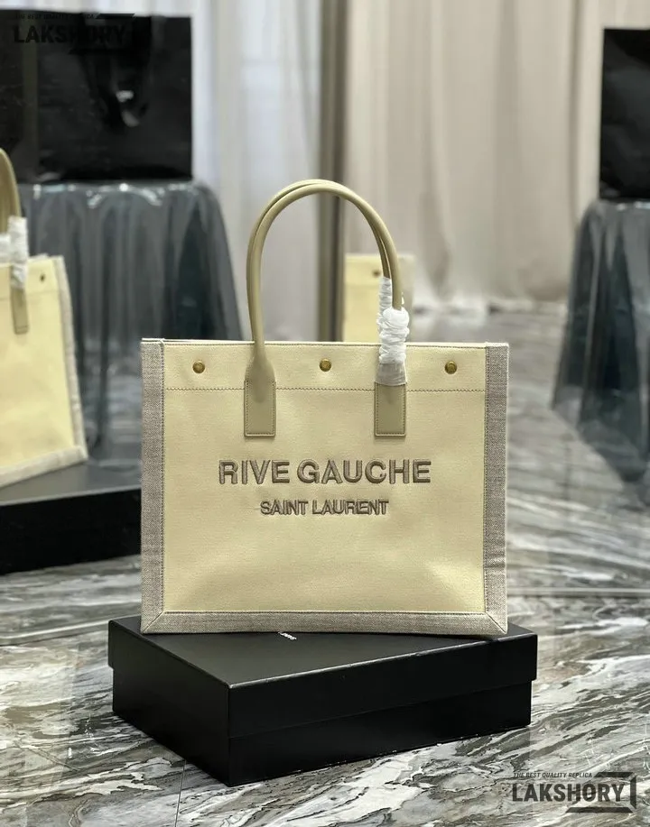 YSL 1:1 Mirror Replica Linen Small Rive Gauche Tote Beige 39CM/15.4IN