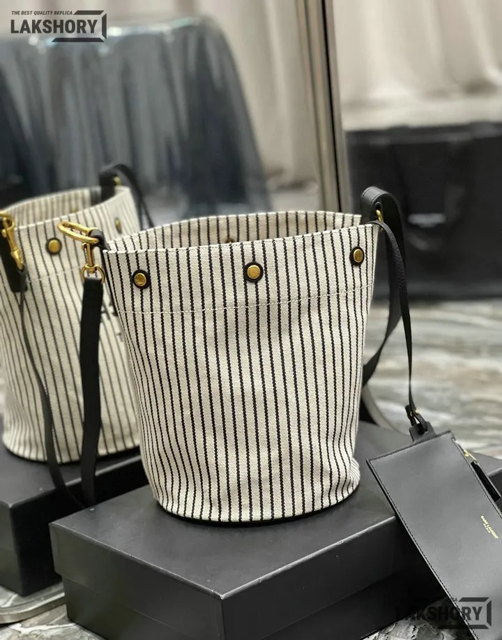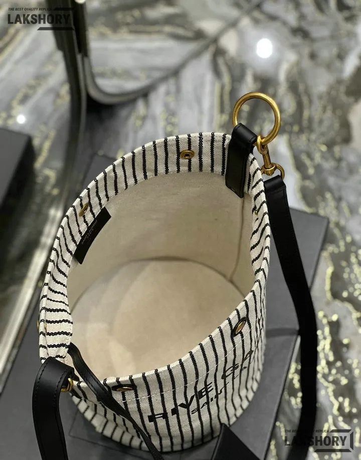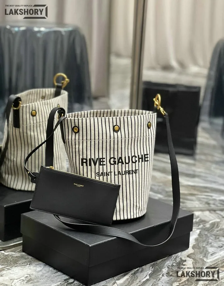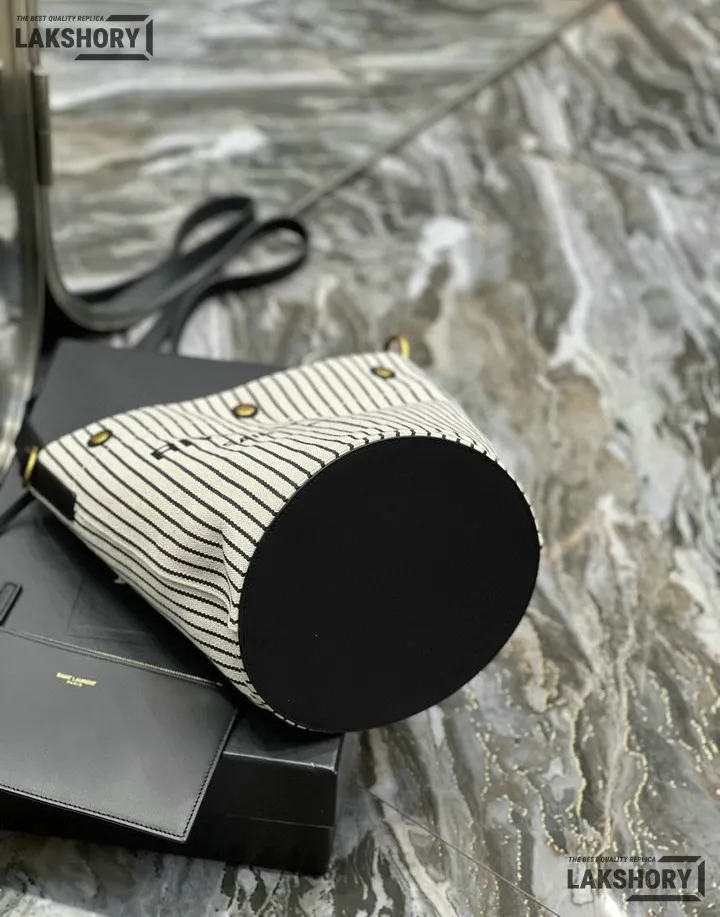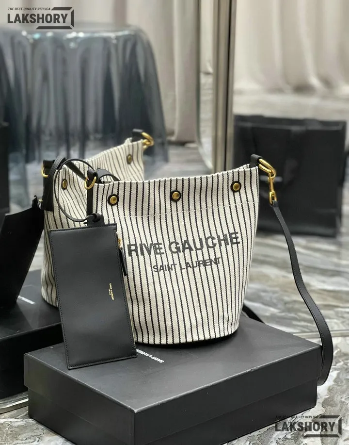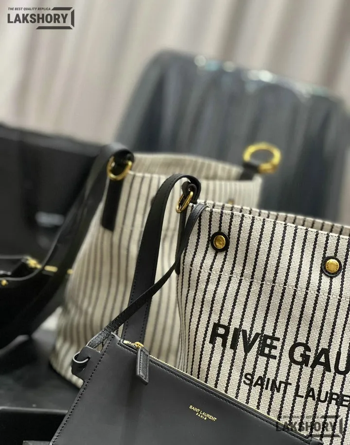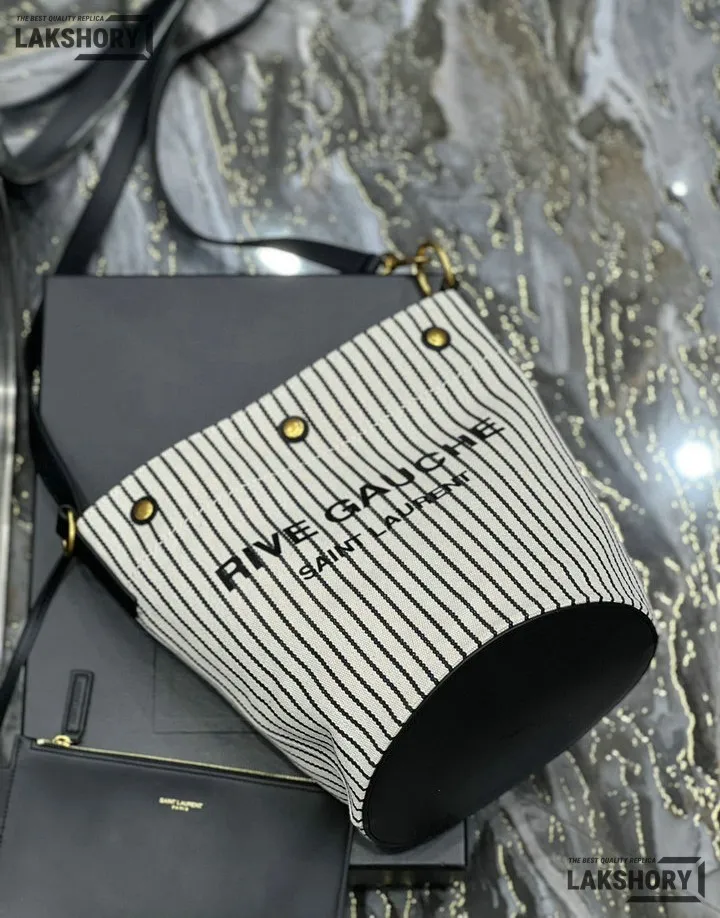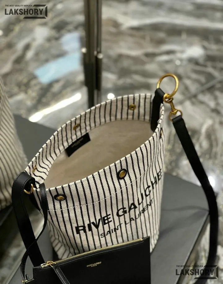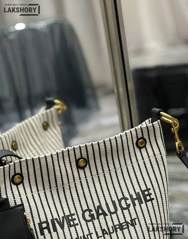 YSL 1:1 Mirror Replica Linen Striped Rive Gauche Bag Cream 20CM/7.9IN