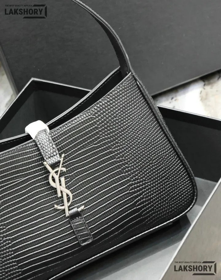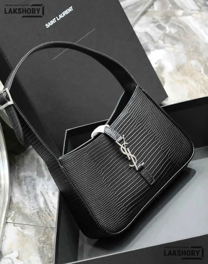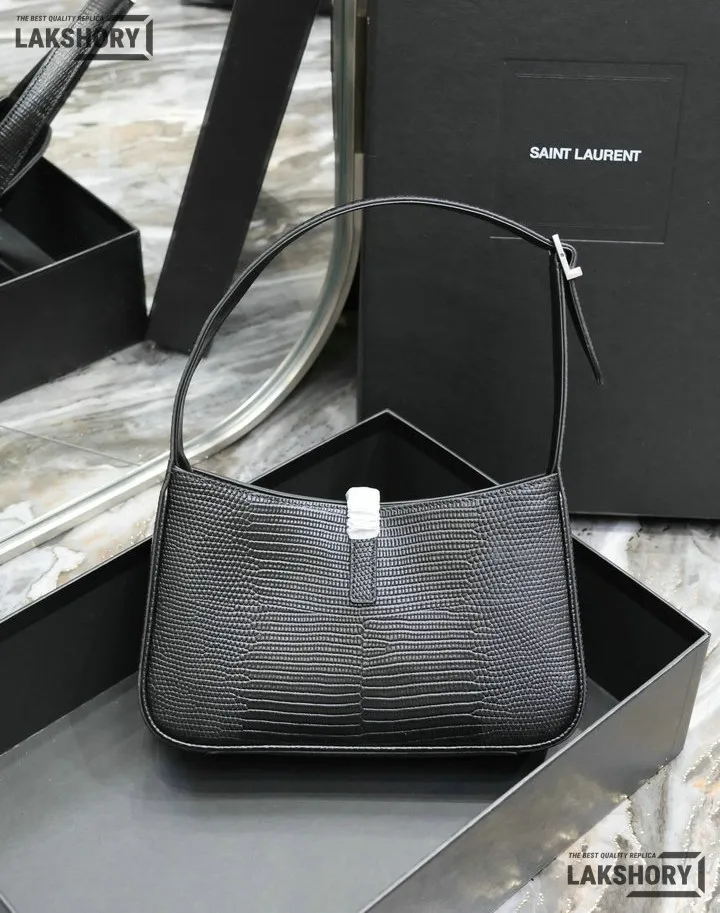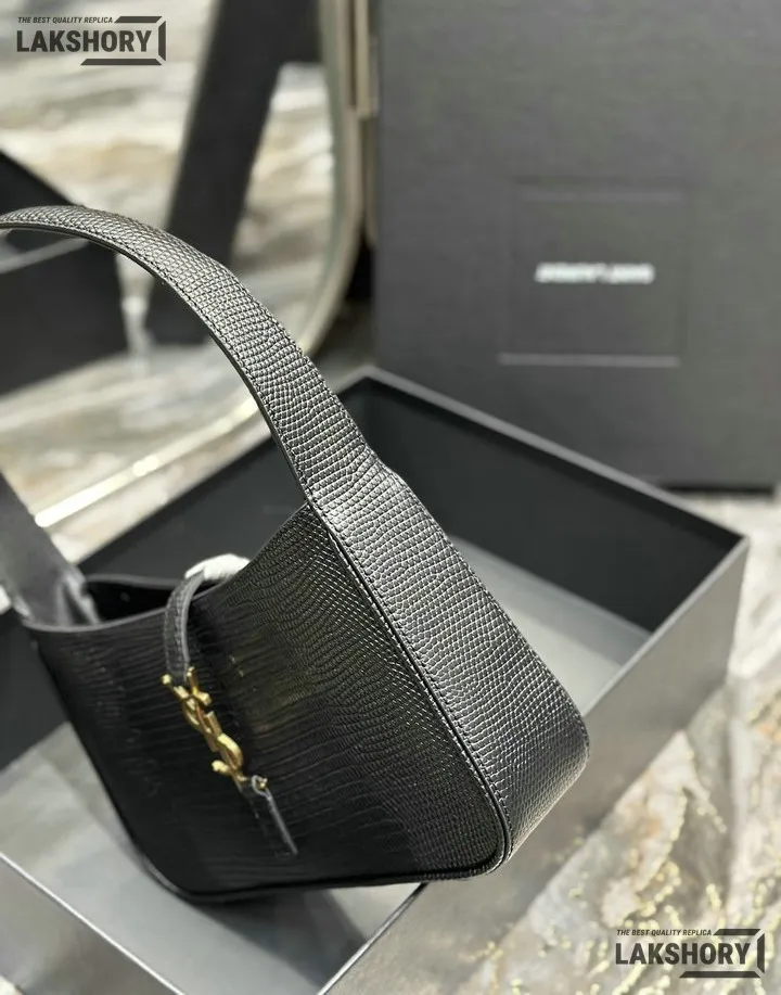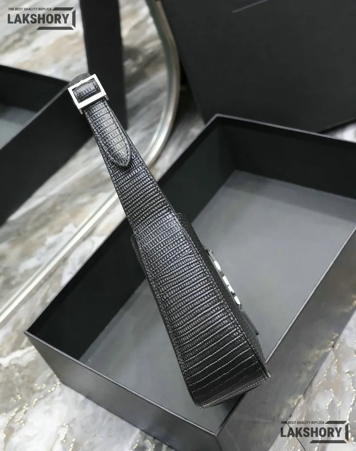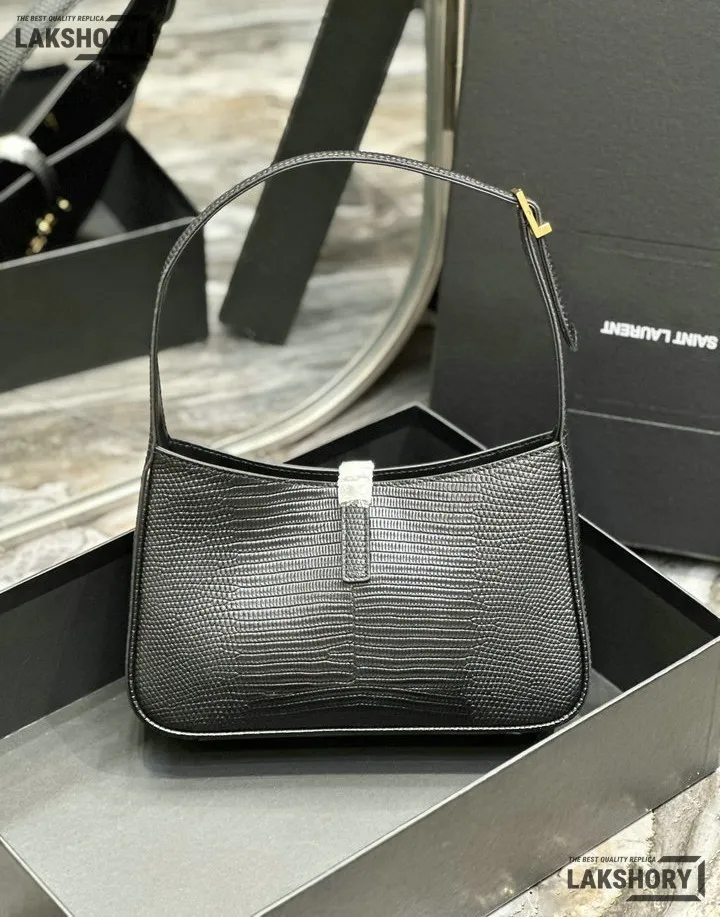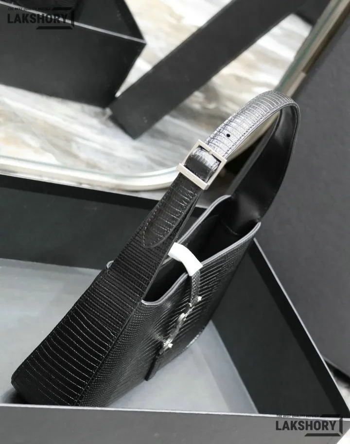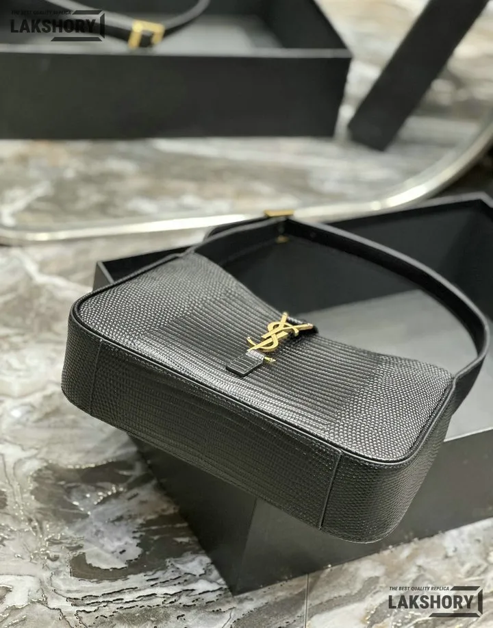 YSL 1:1 Mirror Replica Lizard Embossed LE 5 A 7 Hobo Black 25CM/9.8IN