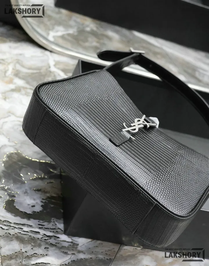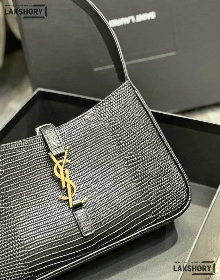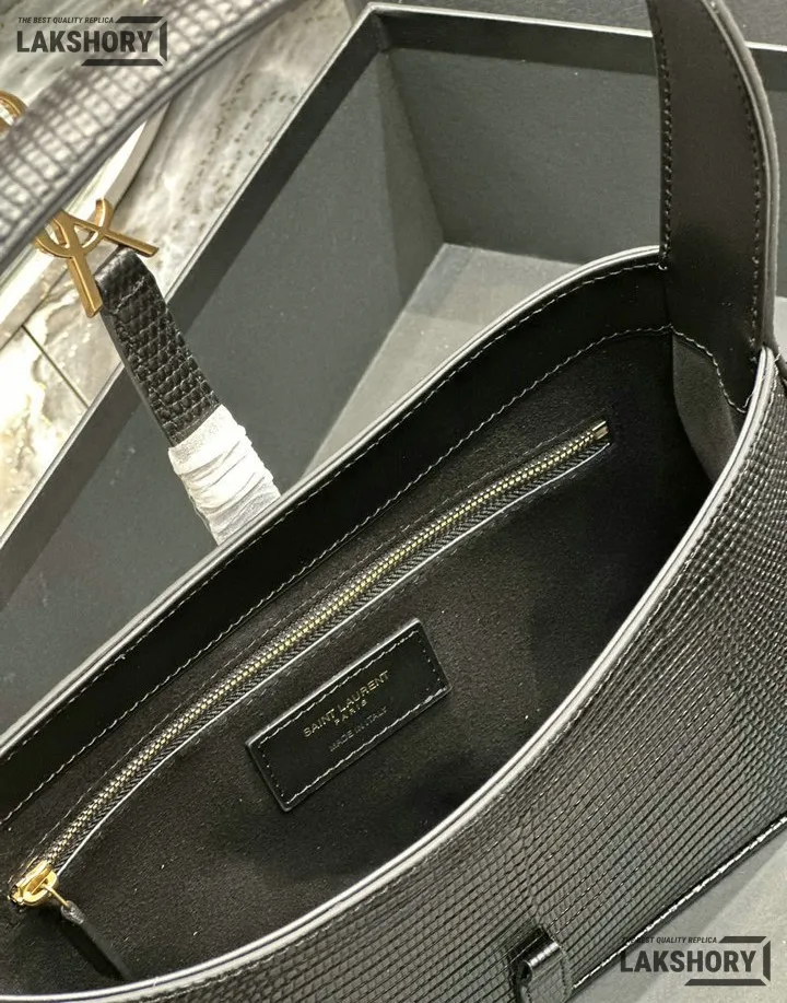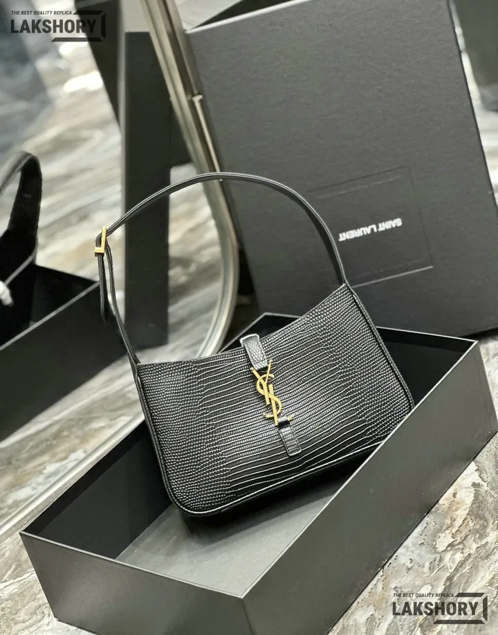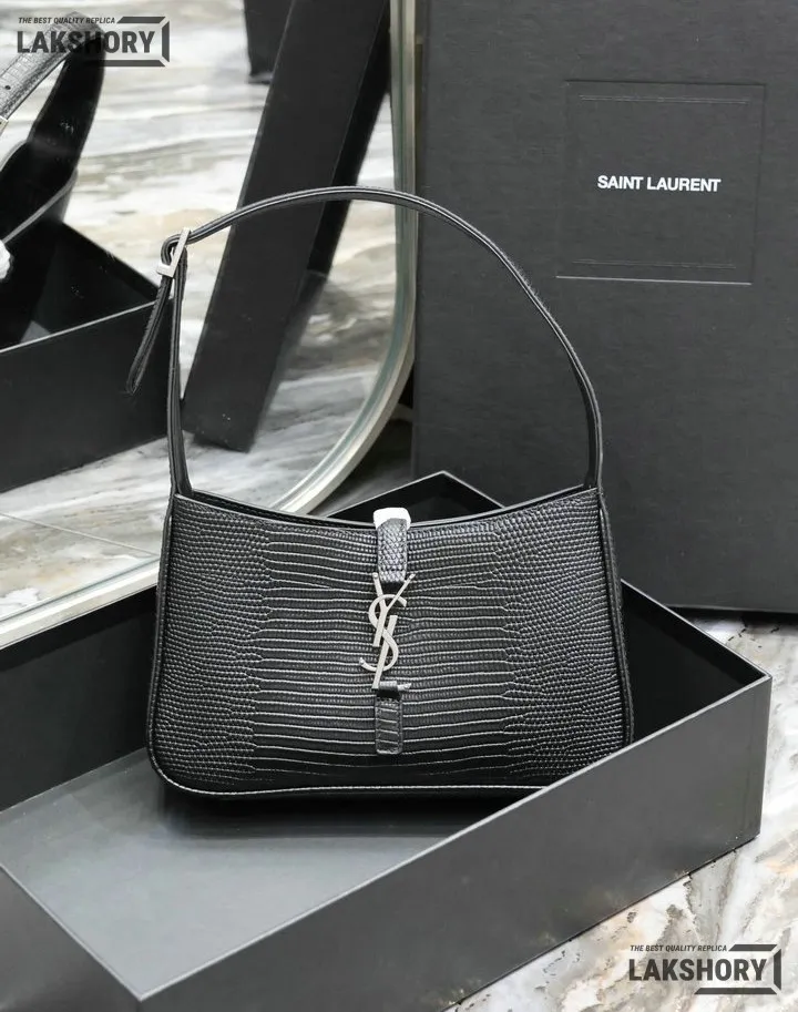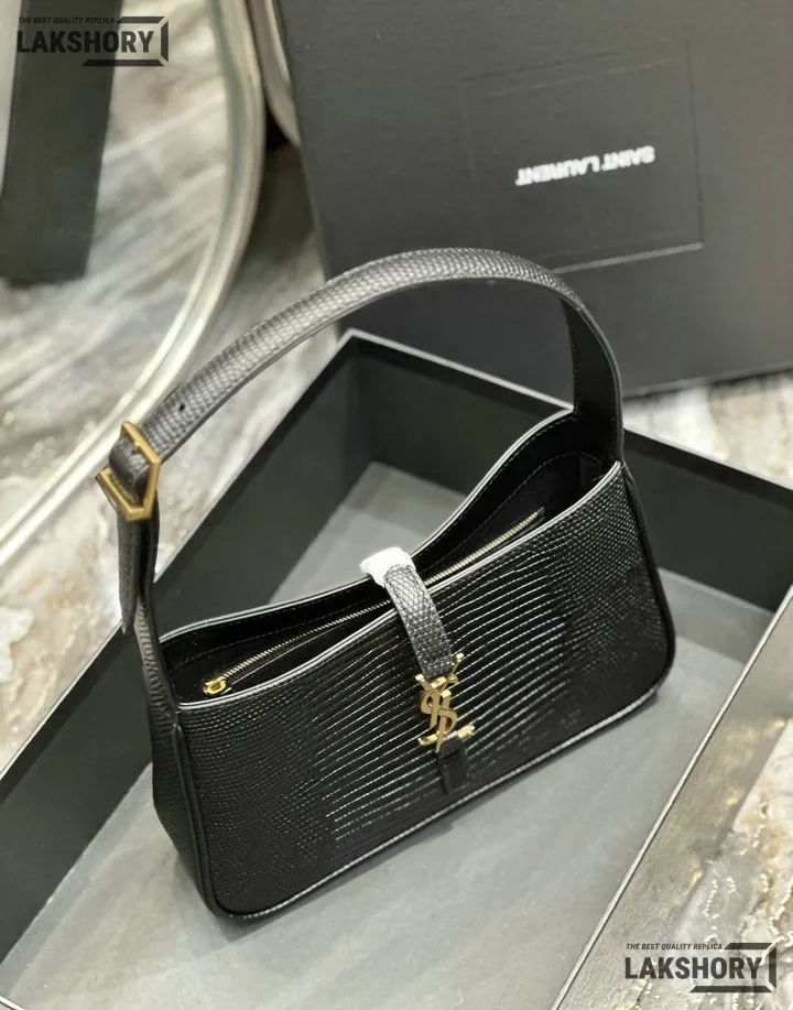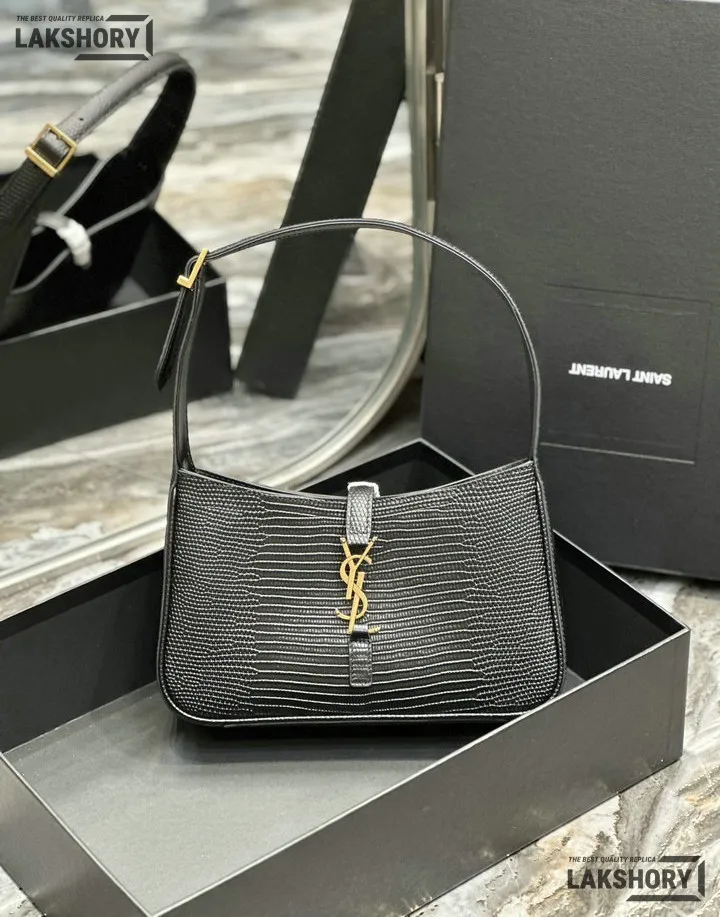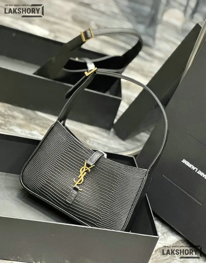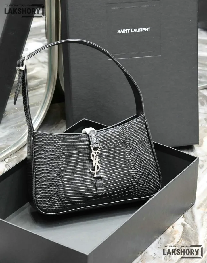 YSL 1:1 Mirror Replica Lizard Embossed LE 5 A 7 Hobo Black 25CM/9.8IN